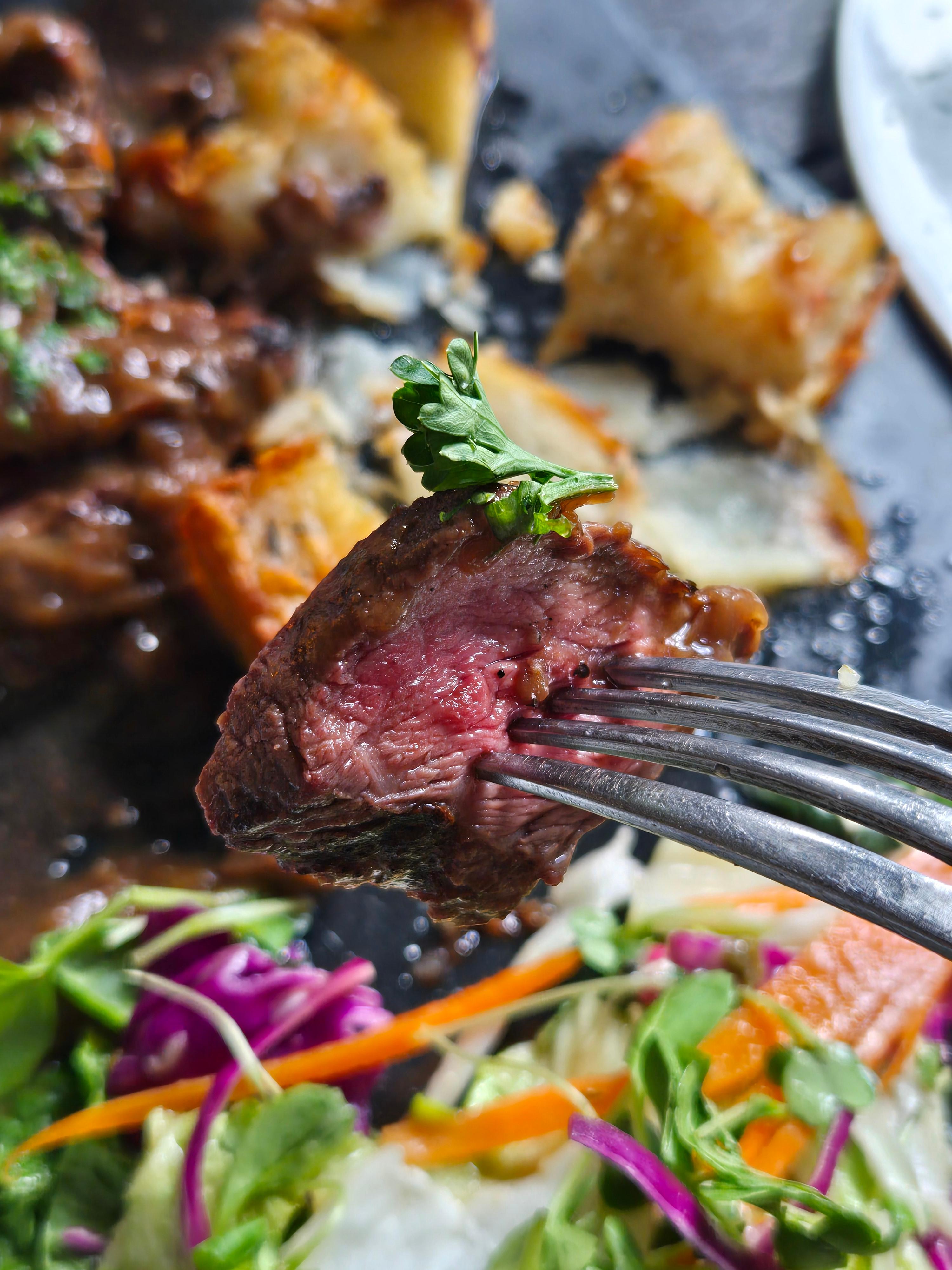 살치살 스테이크는 페퍼소스를 얹은 스테이크와 감자그라탕 그리고 계절채소 샐러드가 함께 나왔구요,