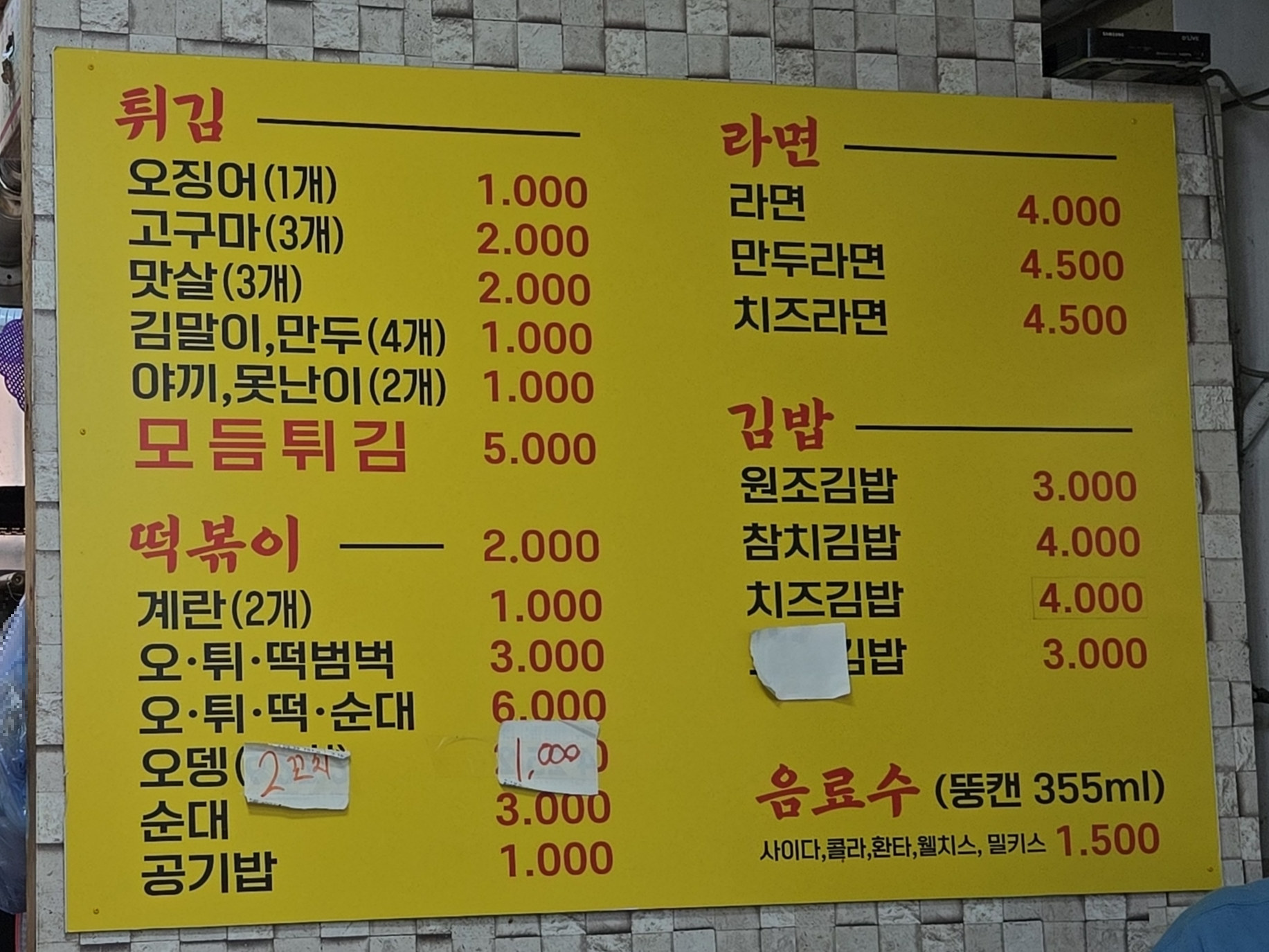 요즘같은 고물가 시대에 떡볶이가 2,000원이고 그 외에 순대, 김밥도 3,000원입니다.