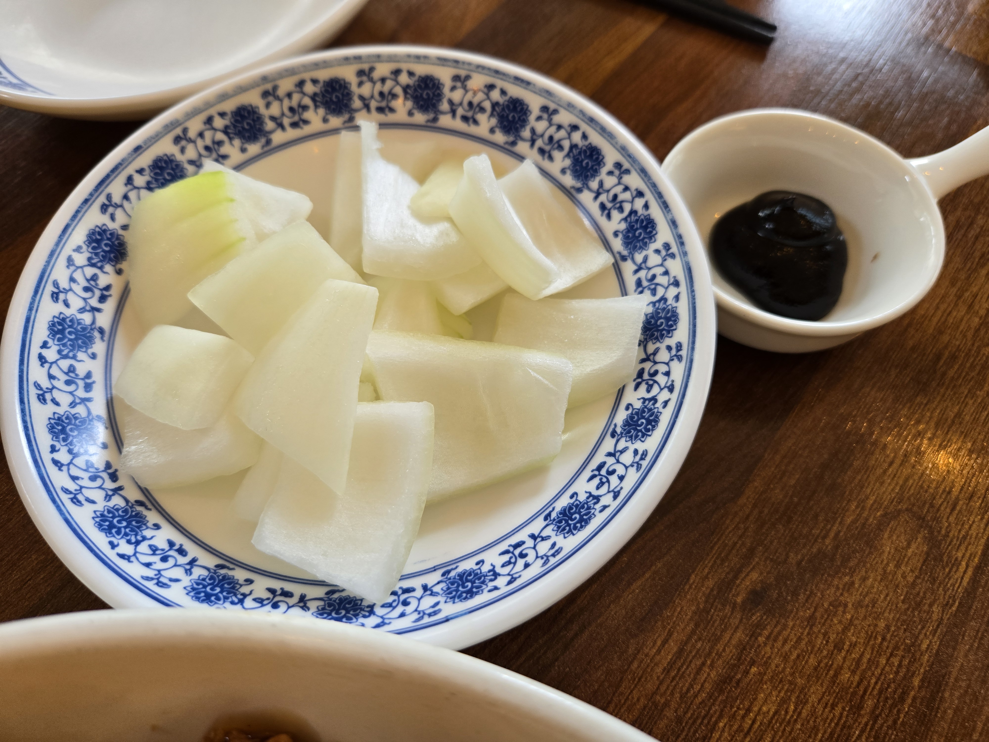 기본반찬은 얇게 썰어놓은 단무지와 짜사이입니다.