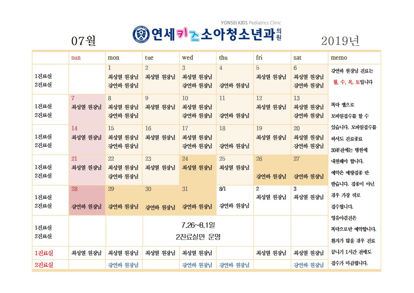 최성열 원장님 휴가: 2019년 7월 26일(금) ~ 8월 1일(목)