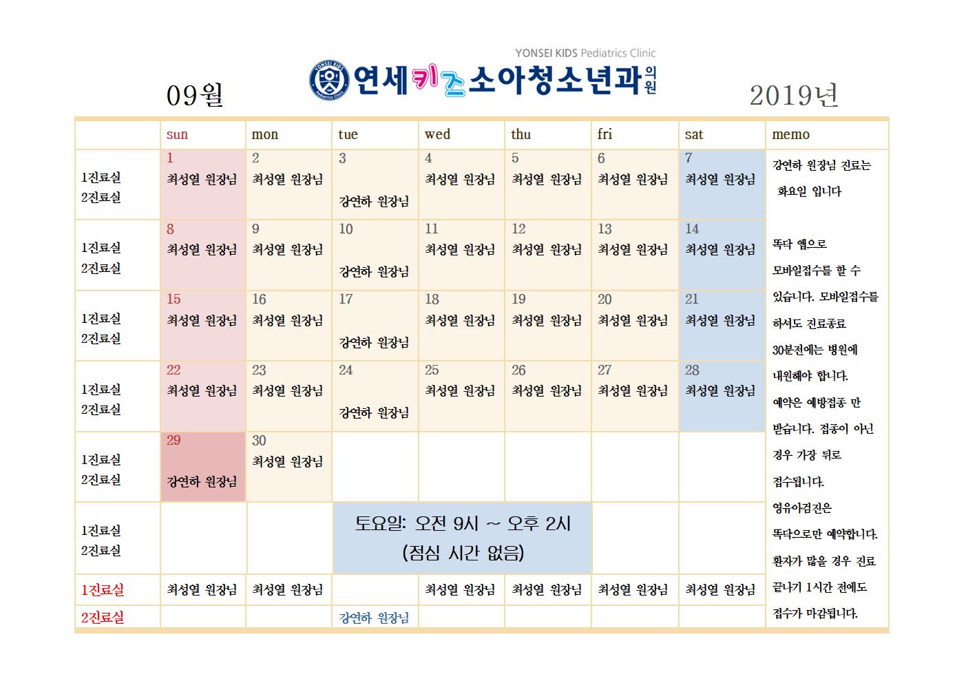 2019년 09월 진료일정