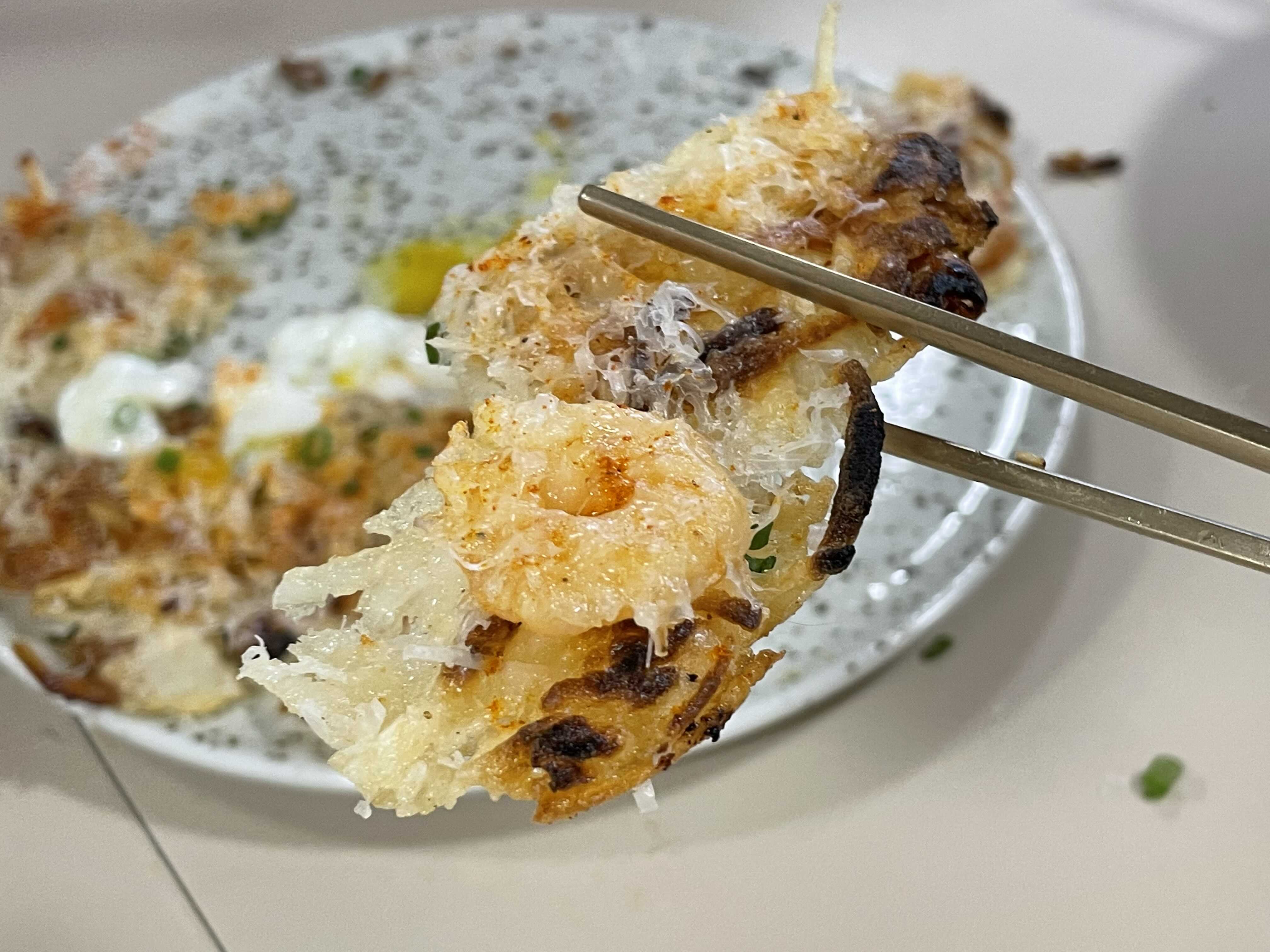 마지막 메뉴는 새우감자전이었는데요, 바삭바삭한 식감이 좋았던 메뉴입니다.