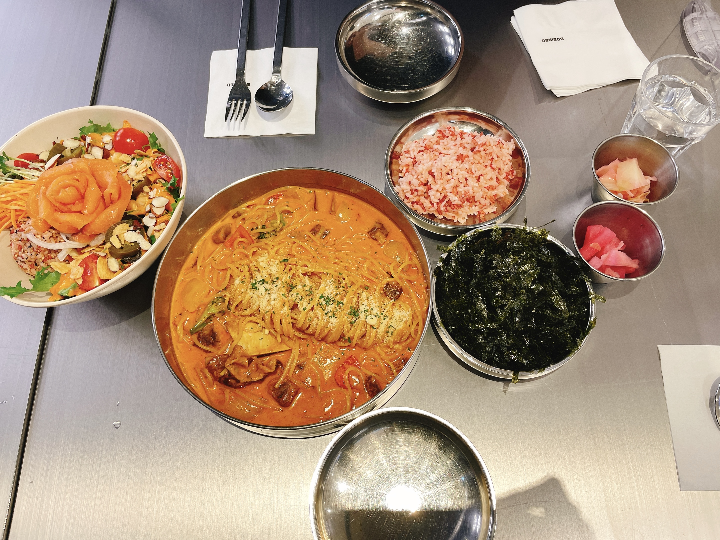 레드 크림 파스타는 푸짐한 소갈비에 매콤한 시크릿 소스가 일품인 메뉴였는데요, 셀프코너에 있는 레드밥과 함께 먹으면 리조또로도 즐길 수 있는 장점이 있는 메뉴였습니다!