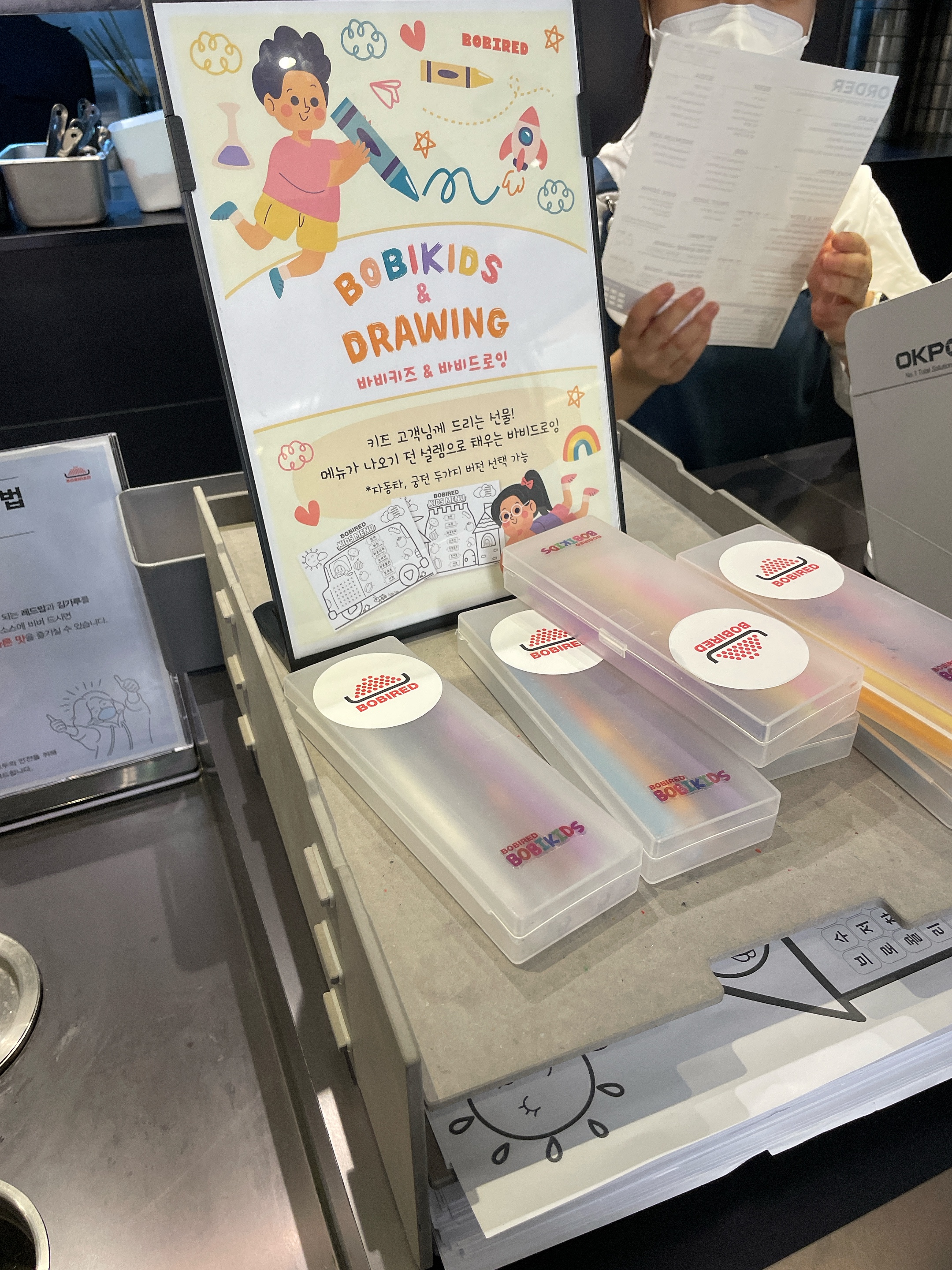 아이들이 음식을 기다리는 시간을 재미있게 보낼 수 있게 색칠놀이와 같은 것도 준비되어 있고,