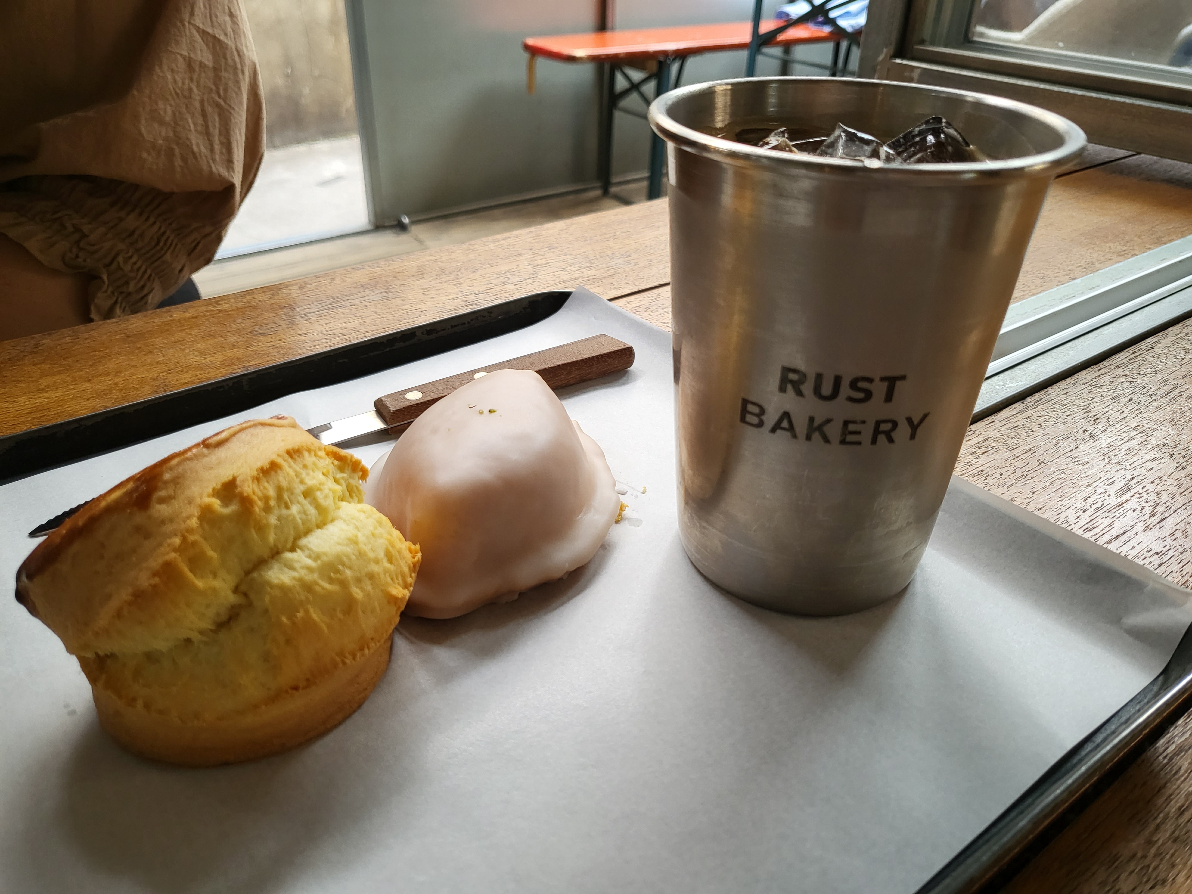 요즘 핫플이라는 문래동의 러스트 베이커리에서 저희는 아메리카노(4,500)와 플레인 스콘(3,600), 위켄드 레몬 케이크(3,800)를 주문하였습니다.