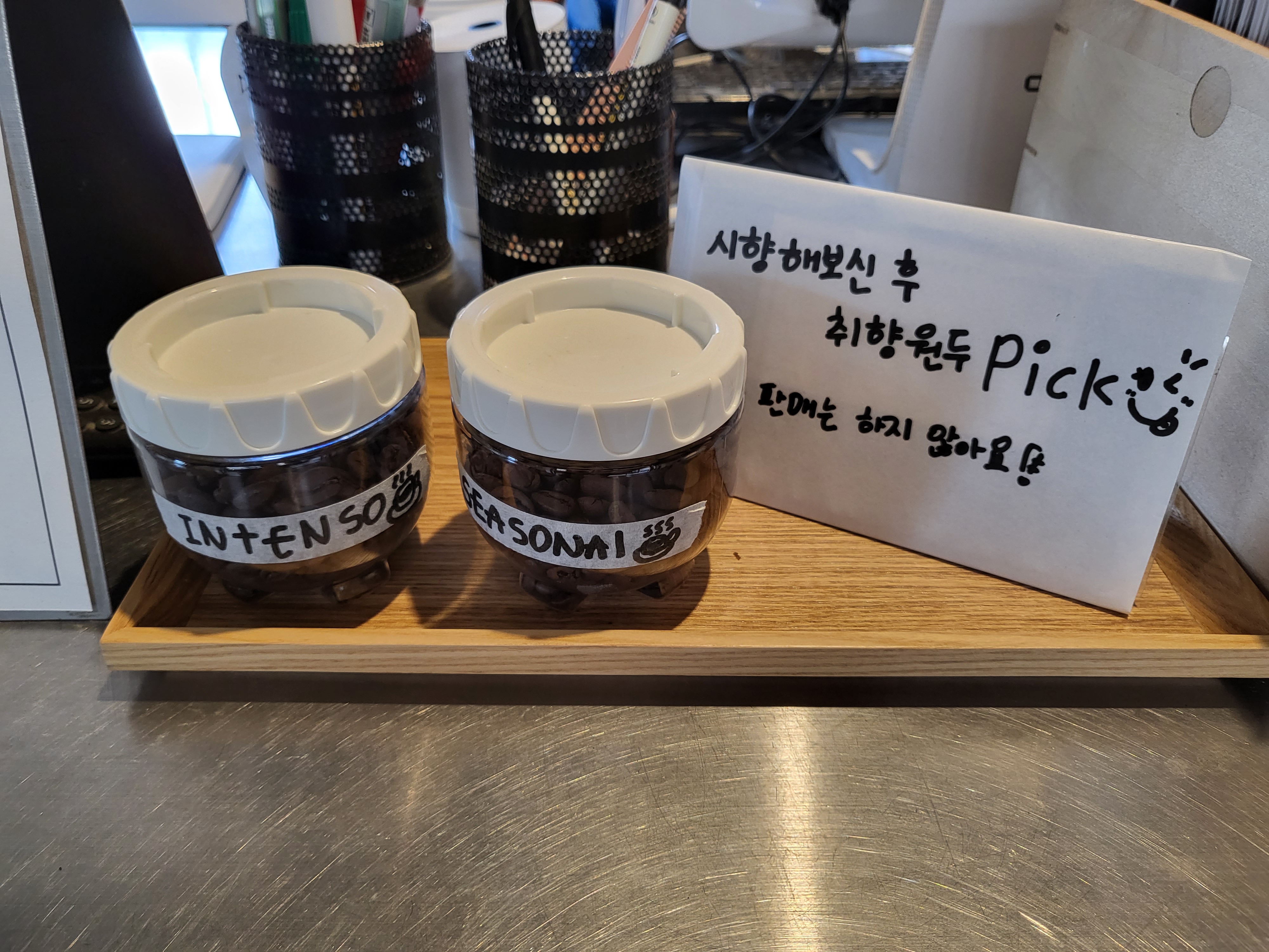 문래 카페 러스트 베이커리에는 원두를 취향에 따라 인텐소 블렌드, 시즈널 블렌드 중에 고를 수 있어서 더욱 좋았습니다!