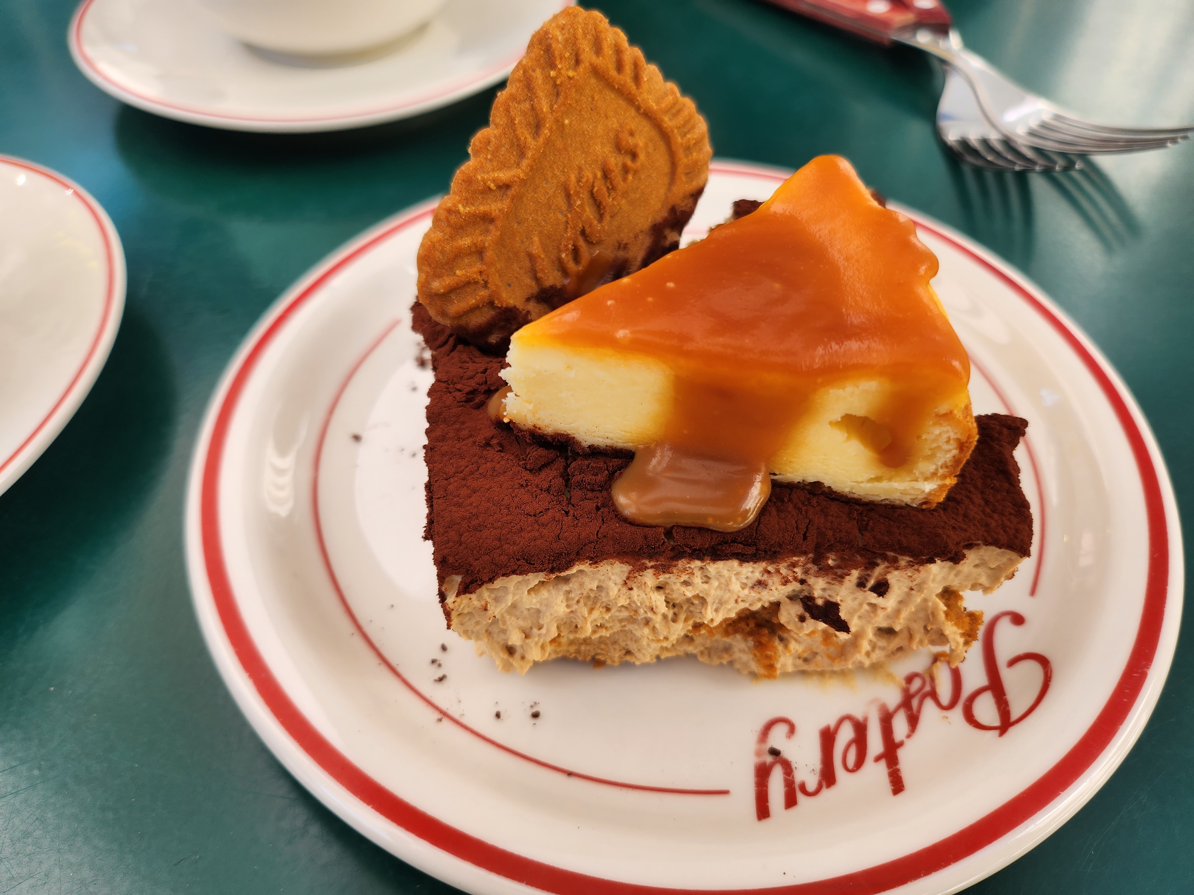 아래는 티라미슈이고 위에는 치즈케이트와 로투스 과자가 있어서 마치 3가지의 디저트를 먹는 느낌이었습니다.