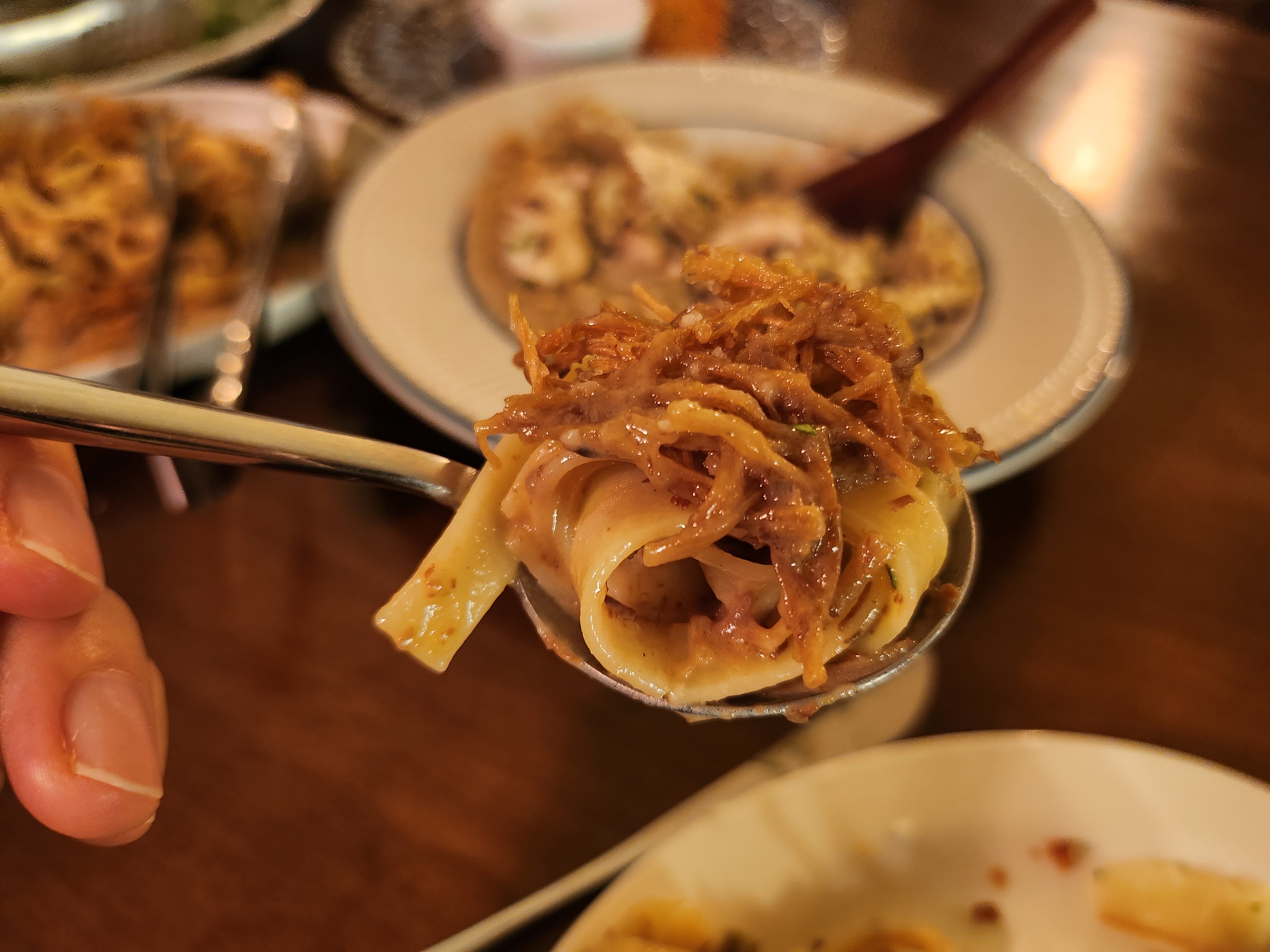 기존에 먹어본 두께의 면이 아니라 색다른 식감이었고, 소스도 진한 맛과 크리스피한 고명(?)이 있어서 맛있었습니다.