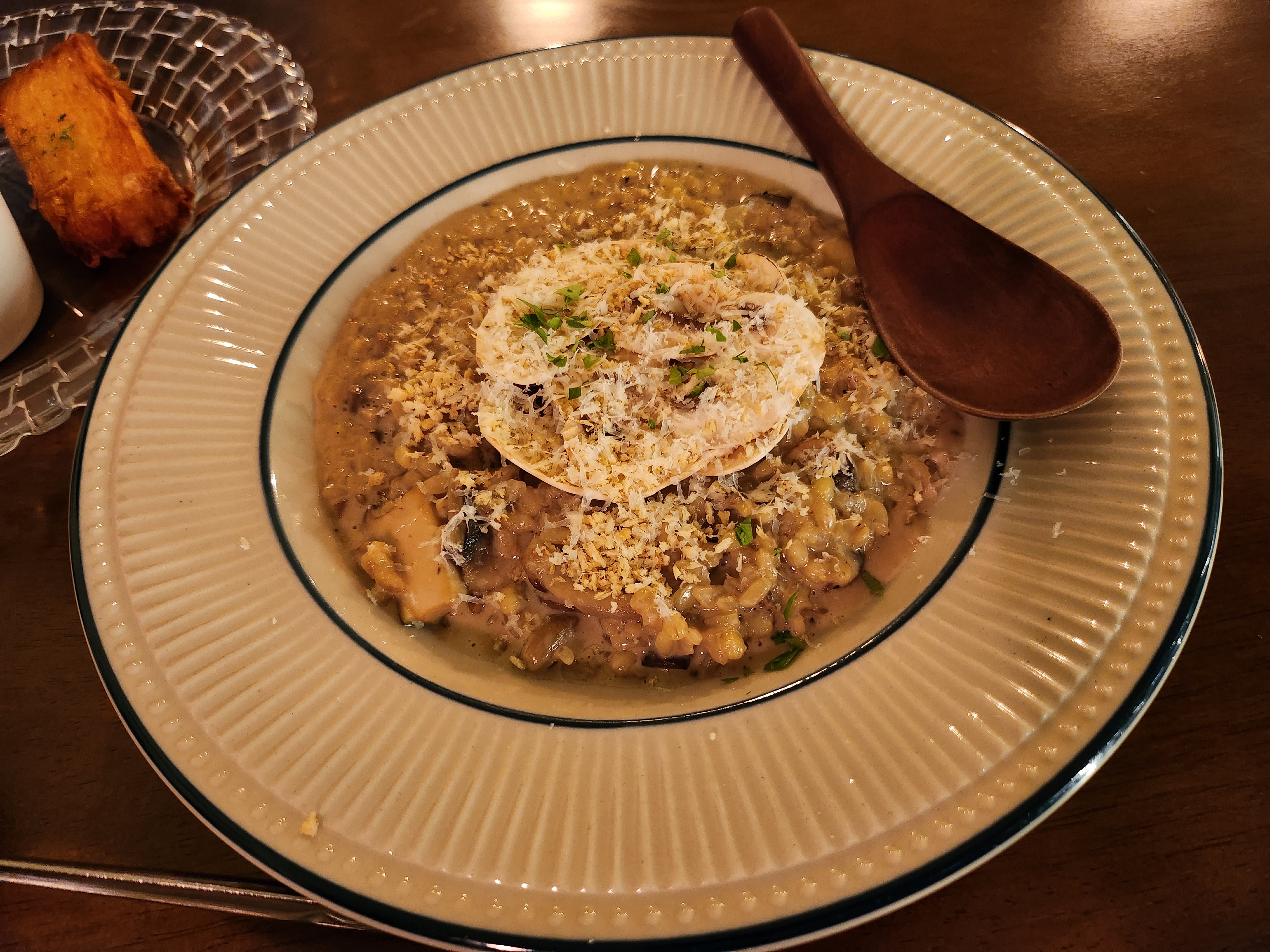 트러플 오일을 곁들인 깊은 포르치니 버섯 리소또라고 하네요~