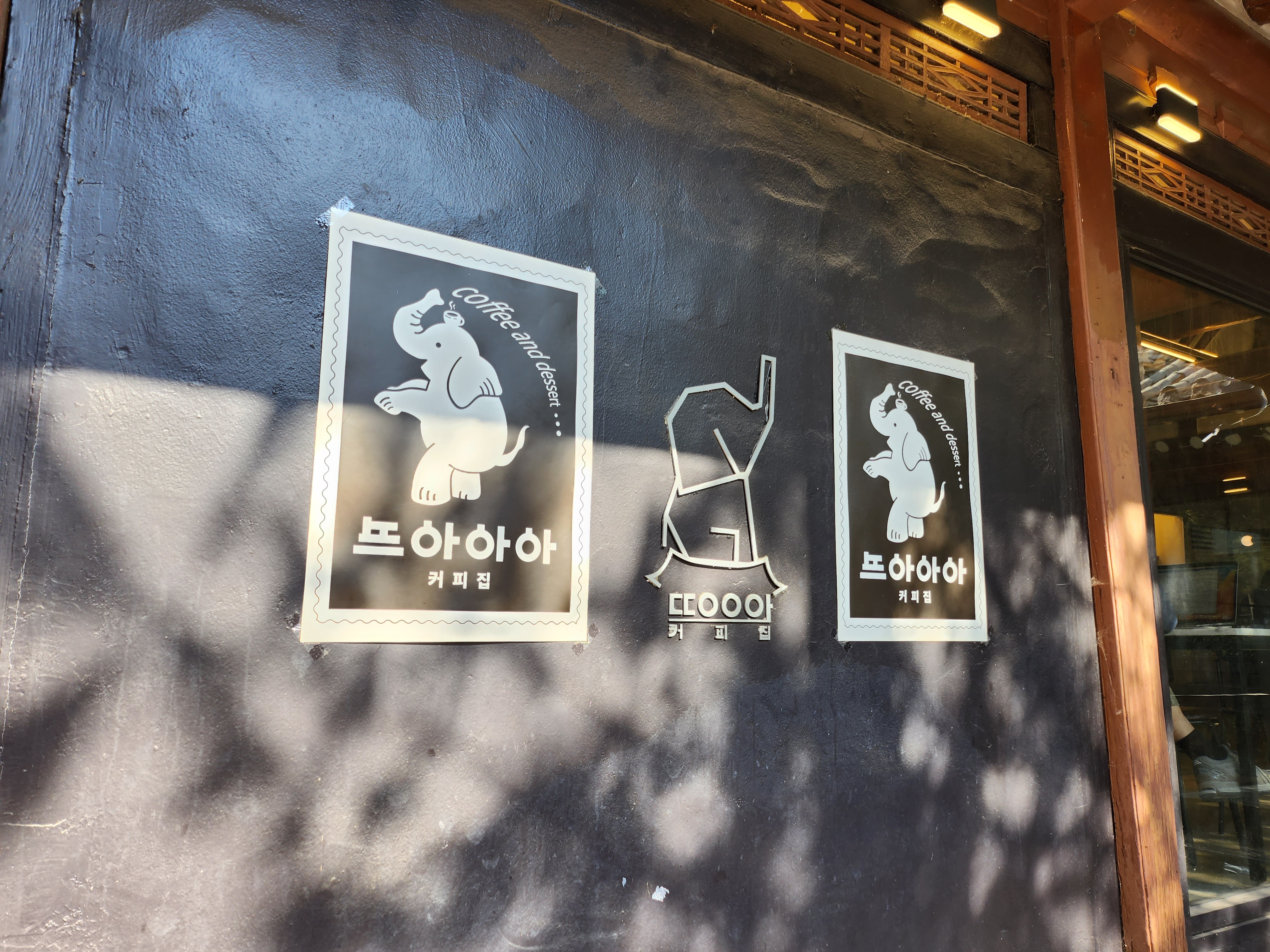 귀여운 코끼리가 그려진 뜨아아아 커피집이네요.