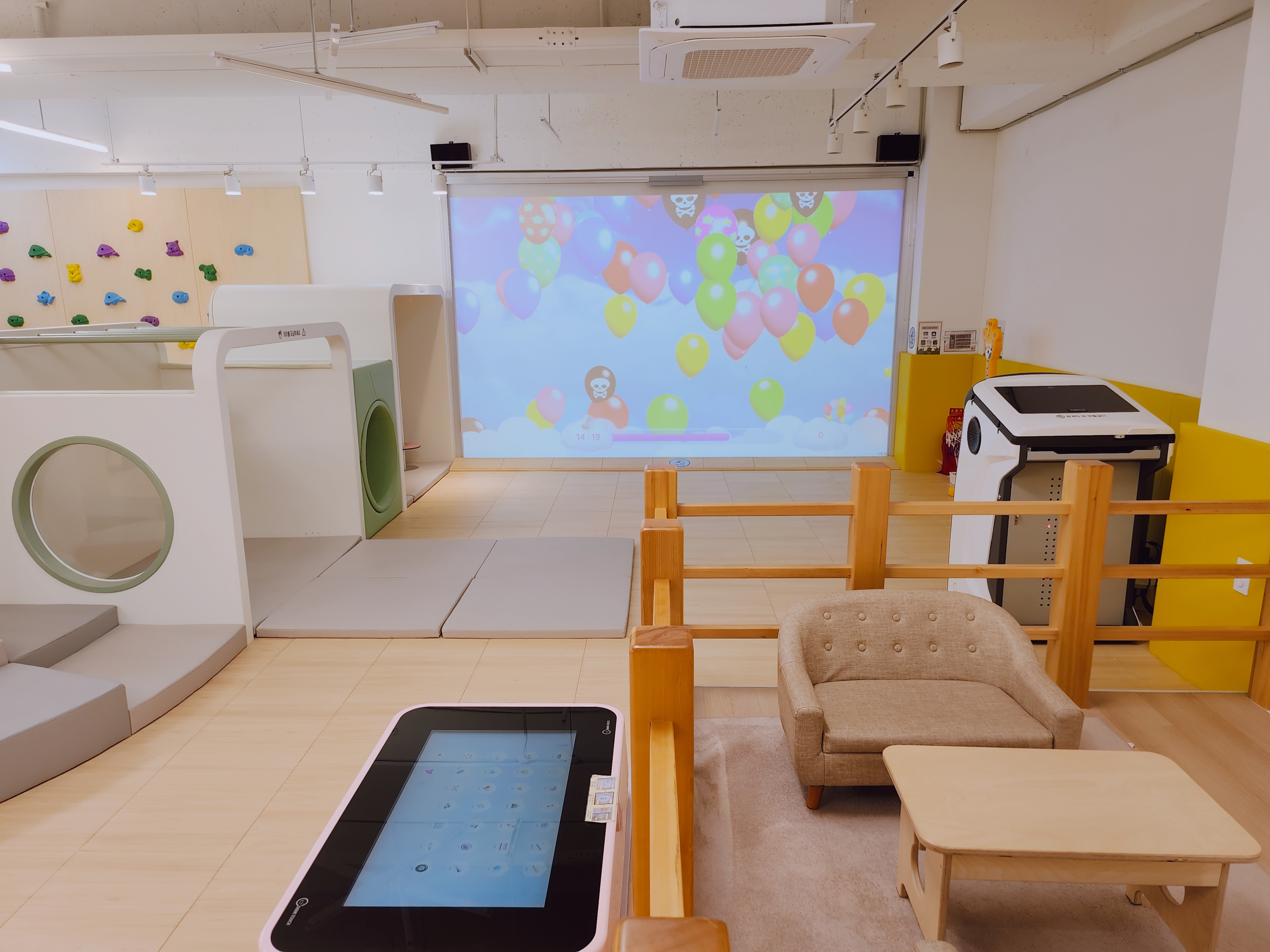 봉에 매달릴 수 있는 공간도 있고, 영상에 나오는 게임을 할 수 있는 인터렉티브 공간도 있네요~