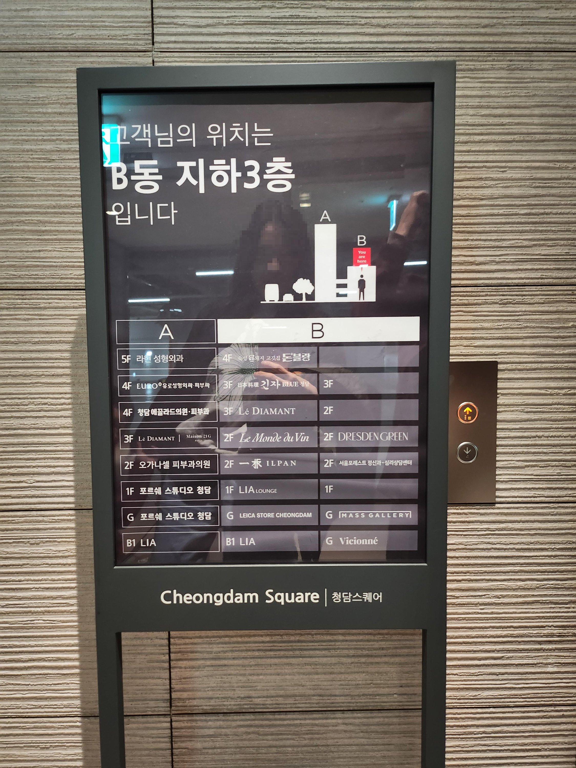 청담스퀘어 건물은 A동과 B동으로 나뉘어져 있어서 엘레베이터를 잘 찾아가야 합니다.