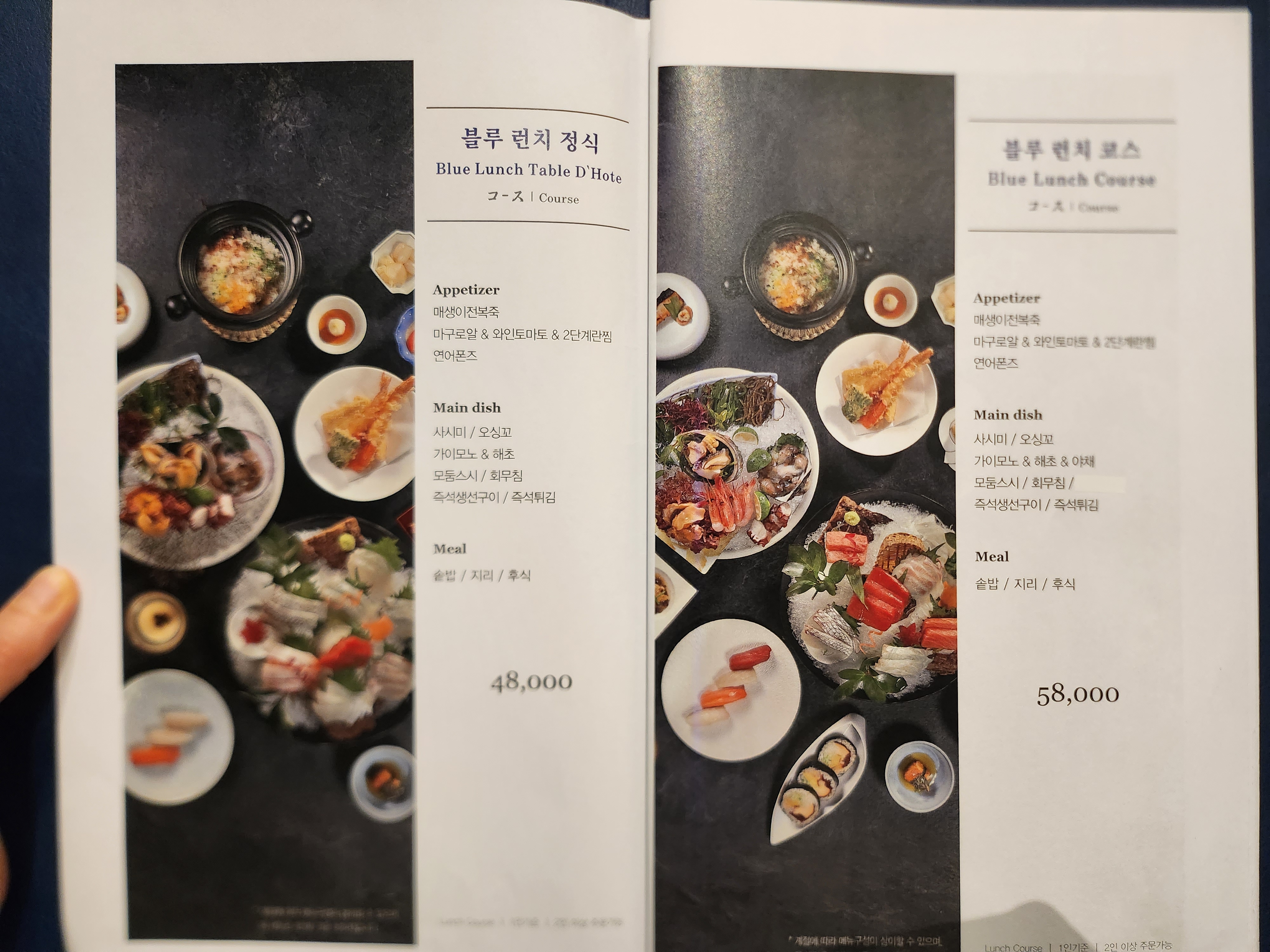청담동 가족모임 하기 좋은 룸식당 긴자 청담블루점의 메뉴판입니다.