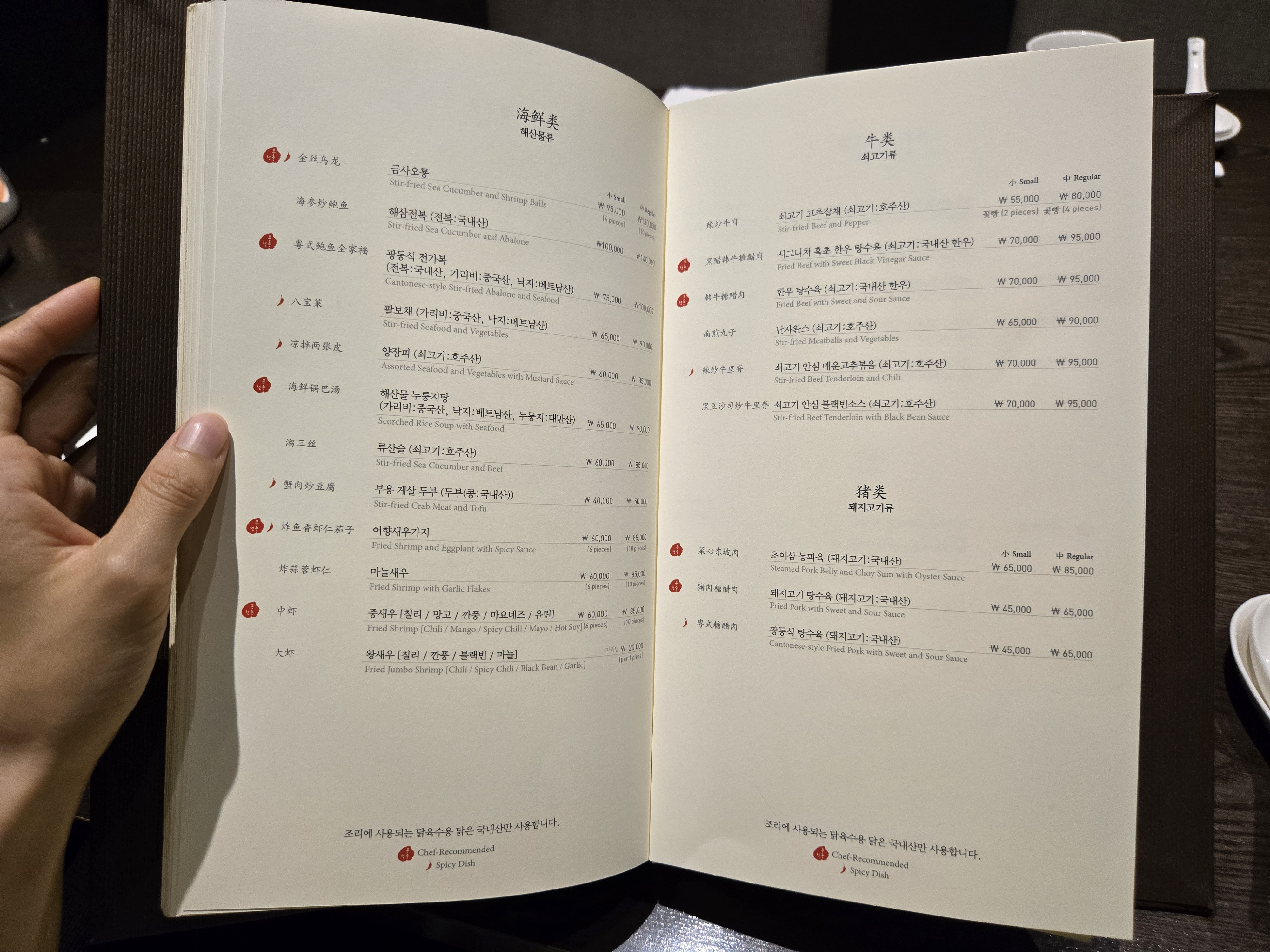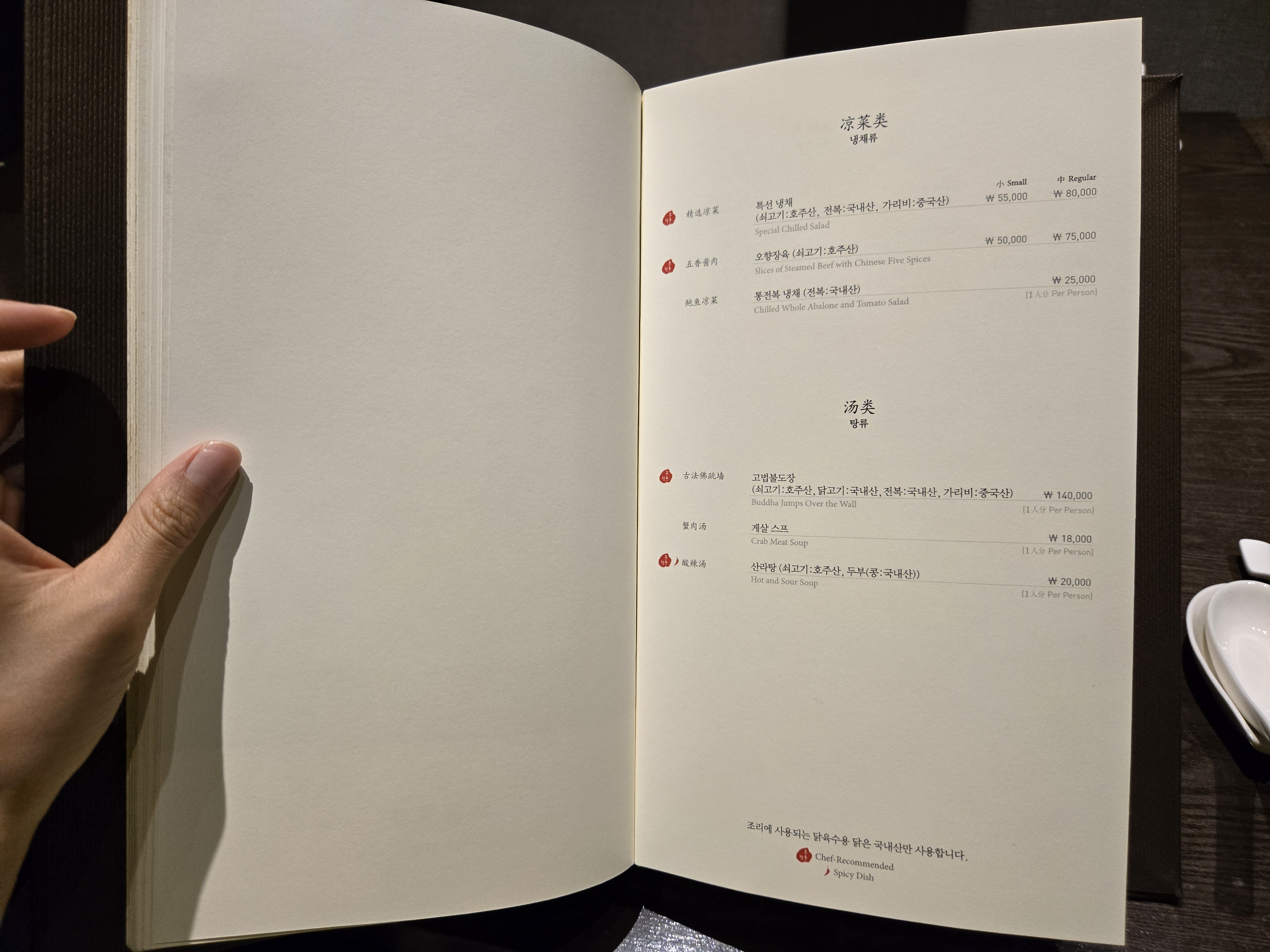 삼성역 중국집 몽중헌의 메뉴는 정말 다양했습니다.