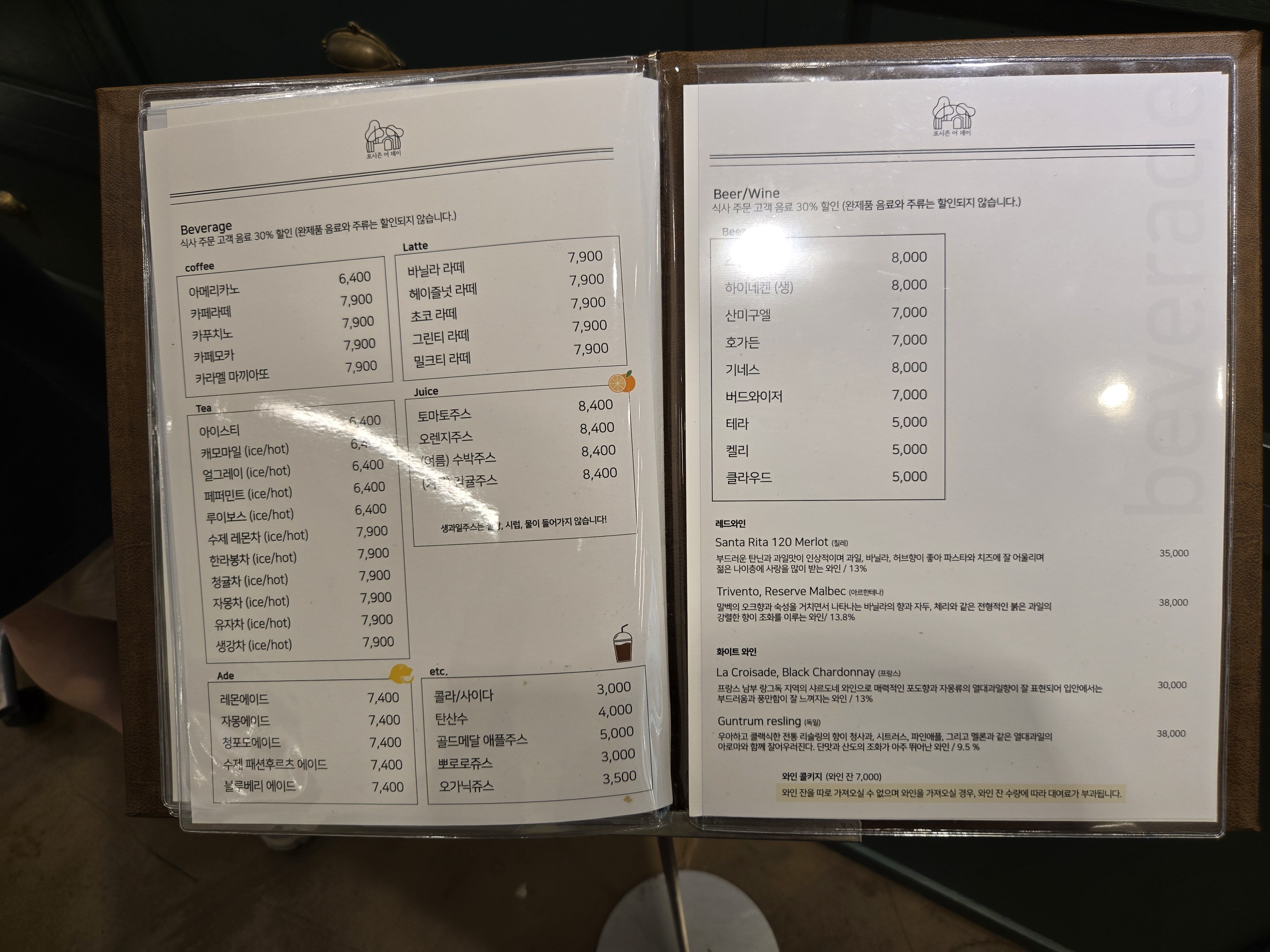 식사 주문 영수증이 있으면 음료는 30%할인도 받을 수 있네요~ ^^