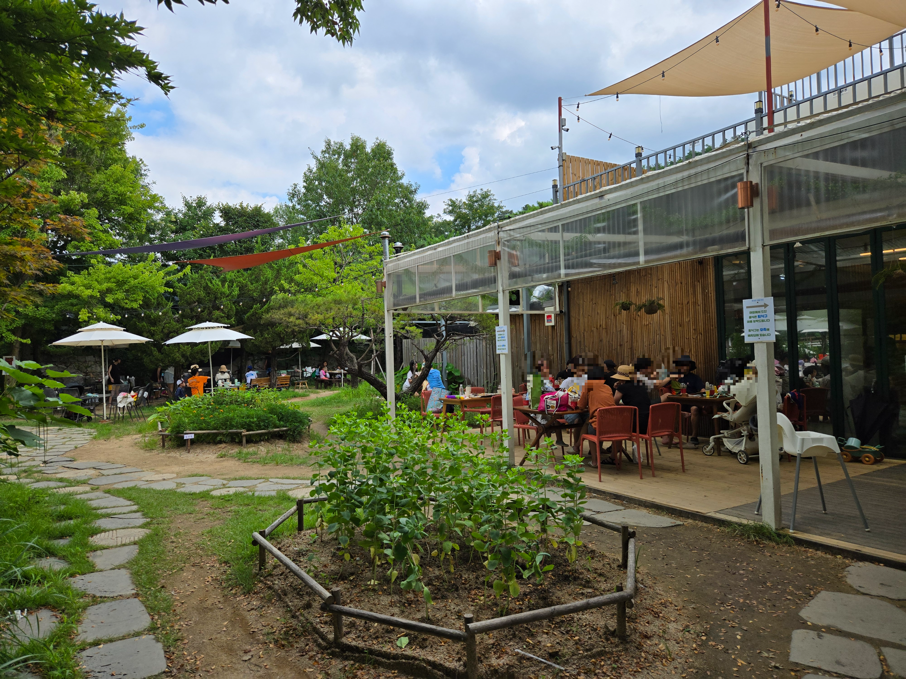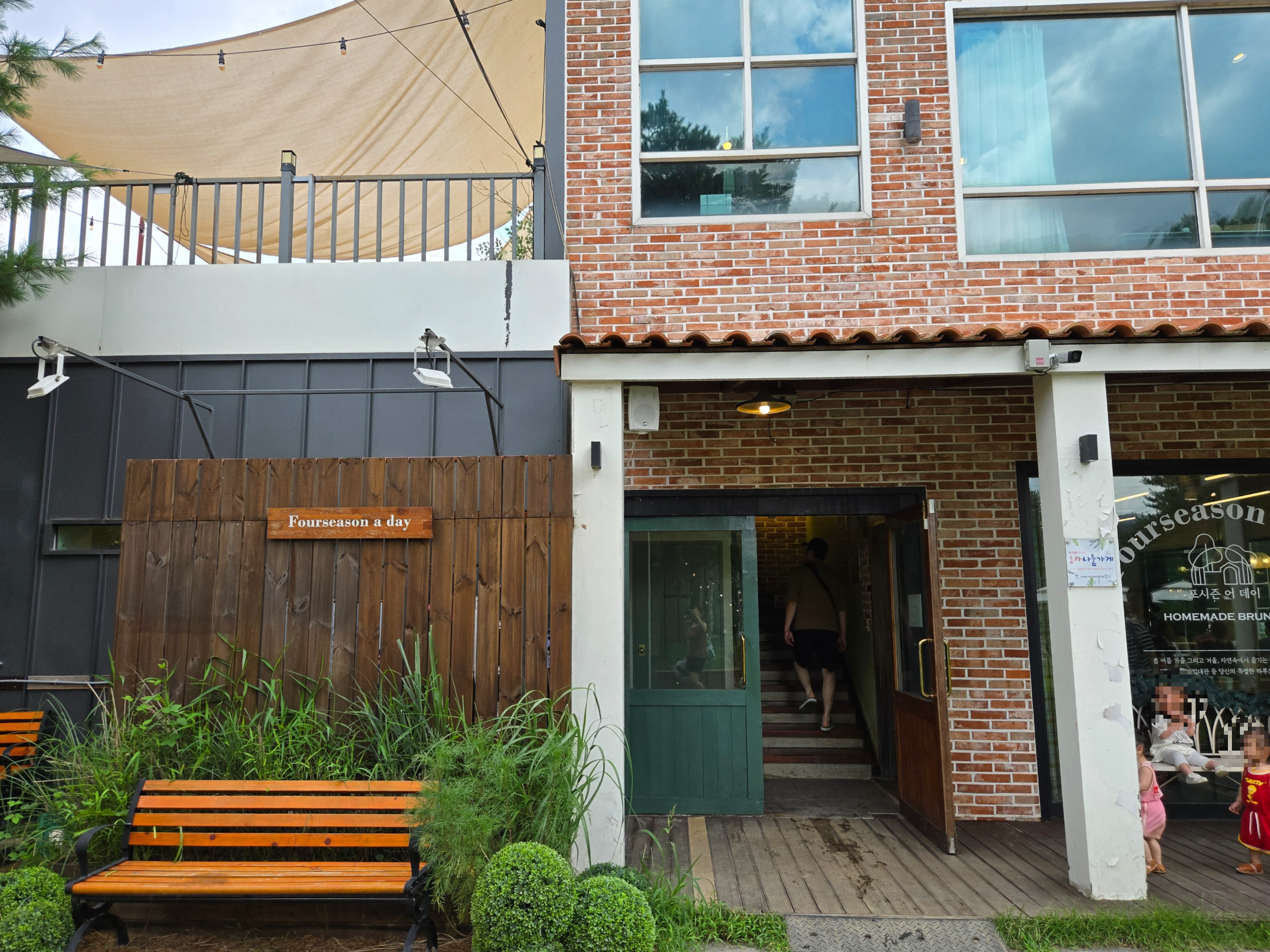 서울 근교 카페 포시즌어데이 건물 앞쪽에 테라스 자리나 나무아래에 많은 자리들이 이미 만석이었습니다!