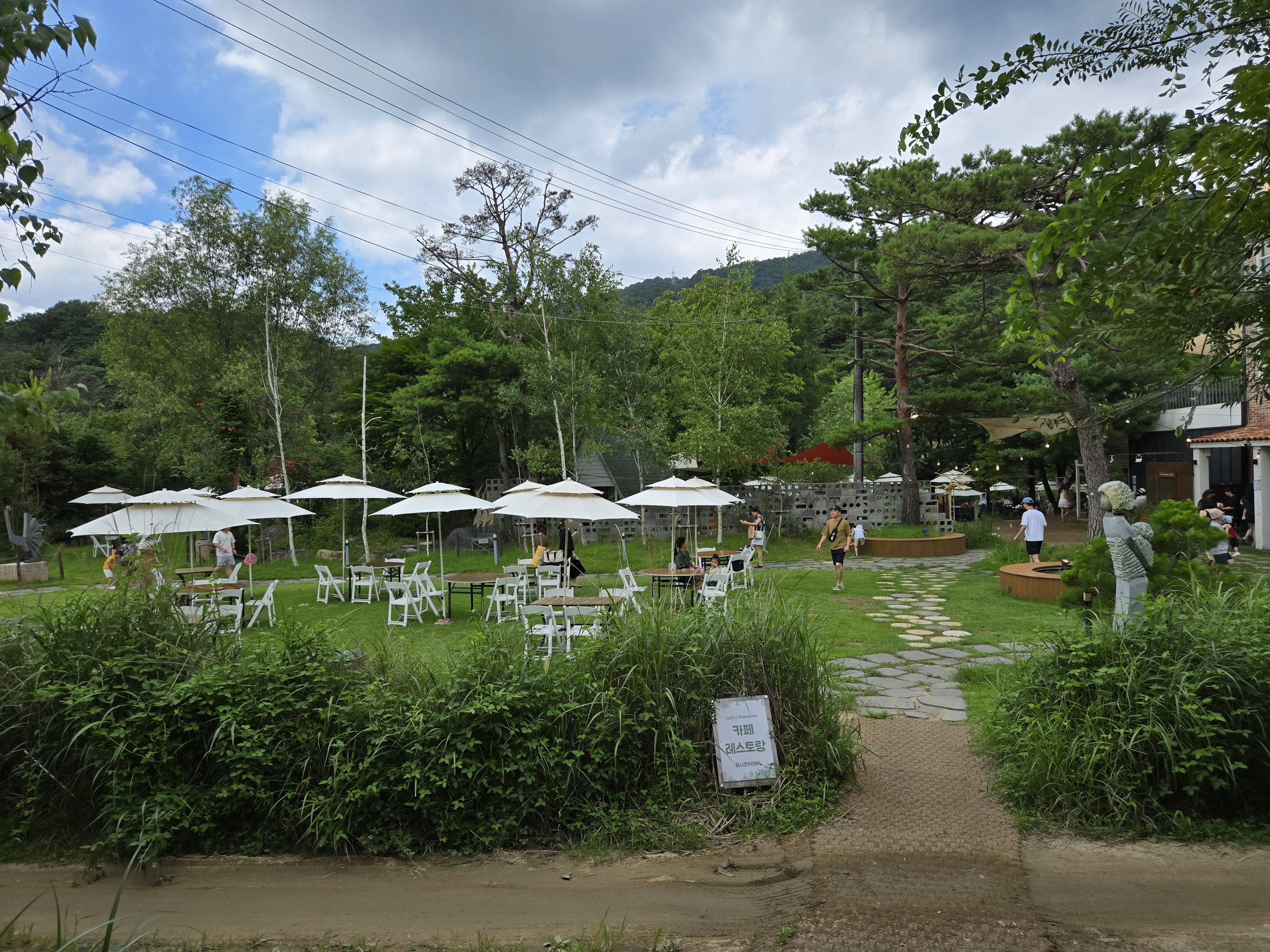 야외 테라스 자리나 잔디밭, 계곡이 보이는 자리고 마련되어 있었습니다.