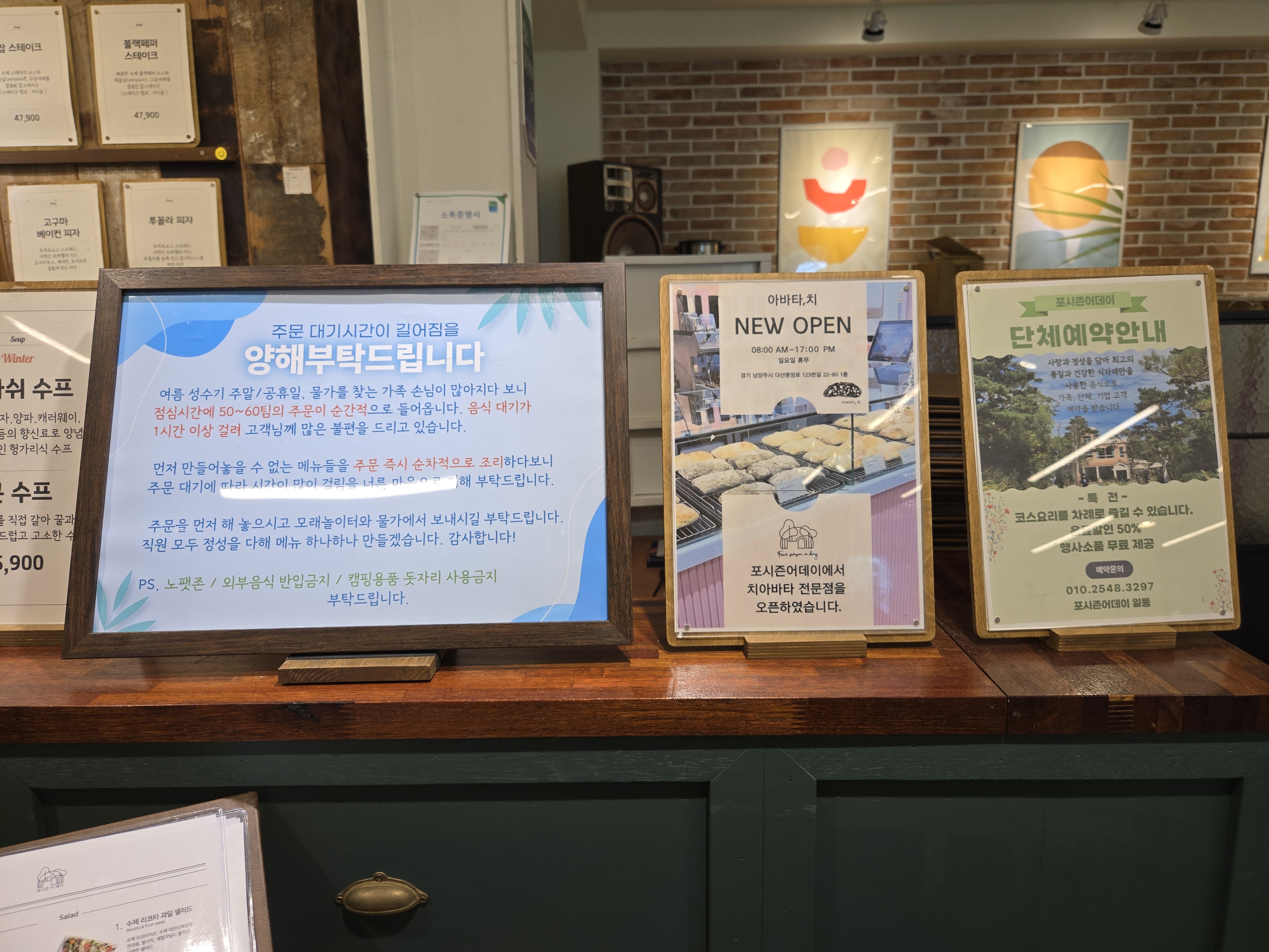 포시즌어데이는 건강한 식사를 위해 모든 메뉴가 주문 즉시 조리되기에 조리 시간이 걸릴 수 있다고 적혀있네요.