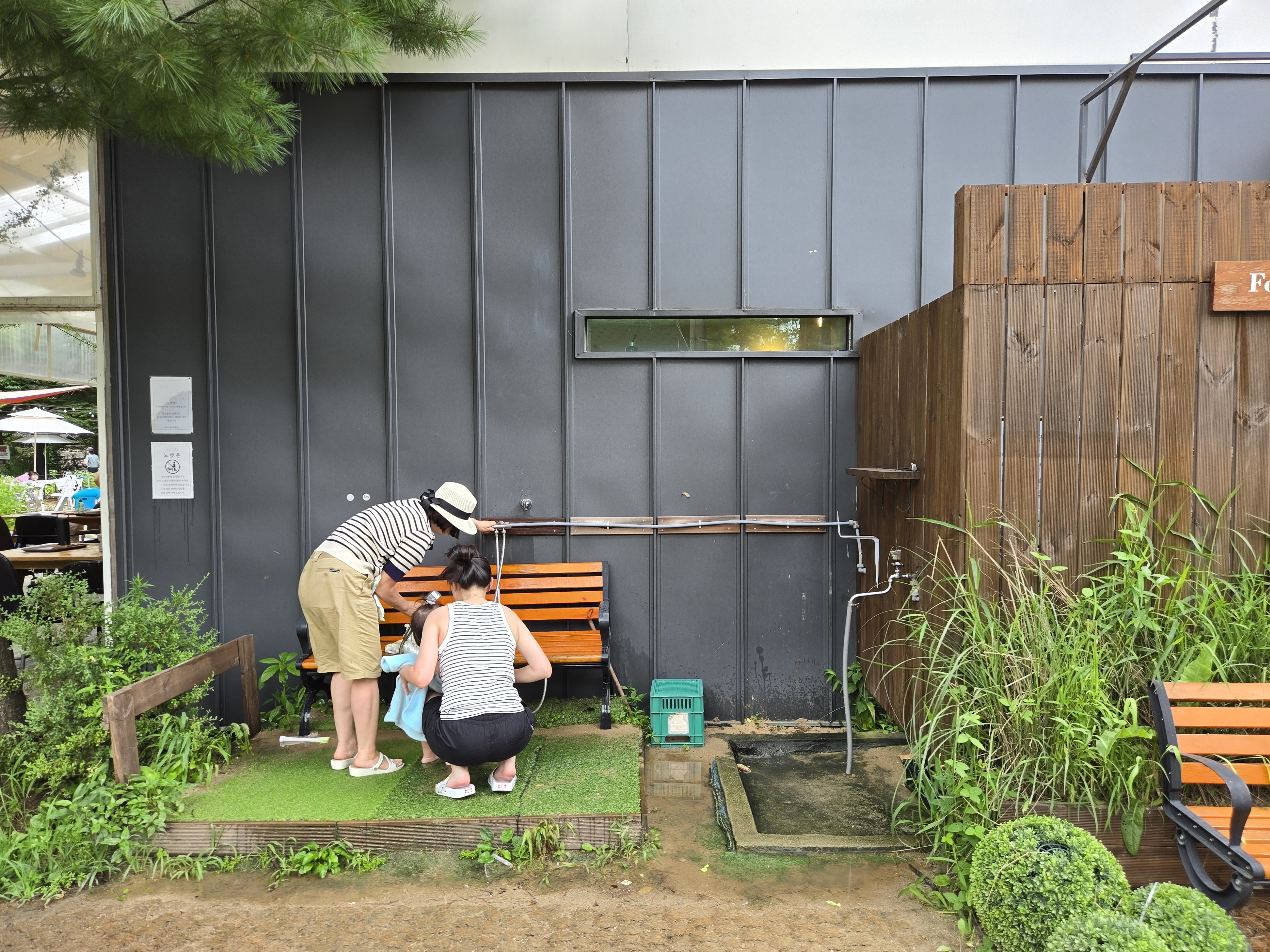 계곡 쪽에 자리를 잡으려고 우선 야외 자리를 둘러보다 발견한 수돗가입니다.