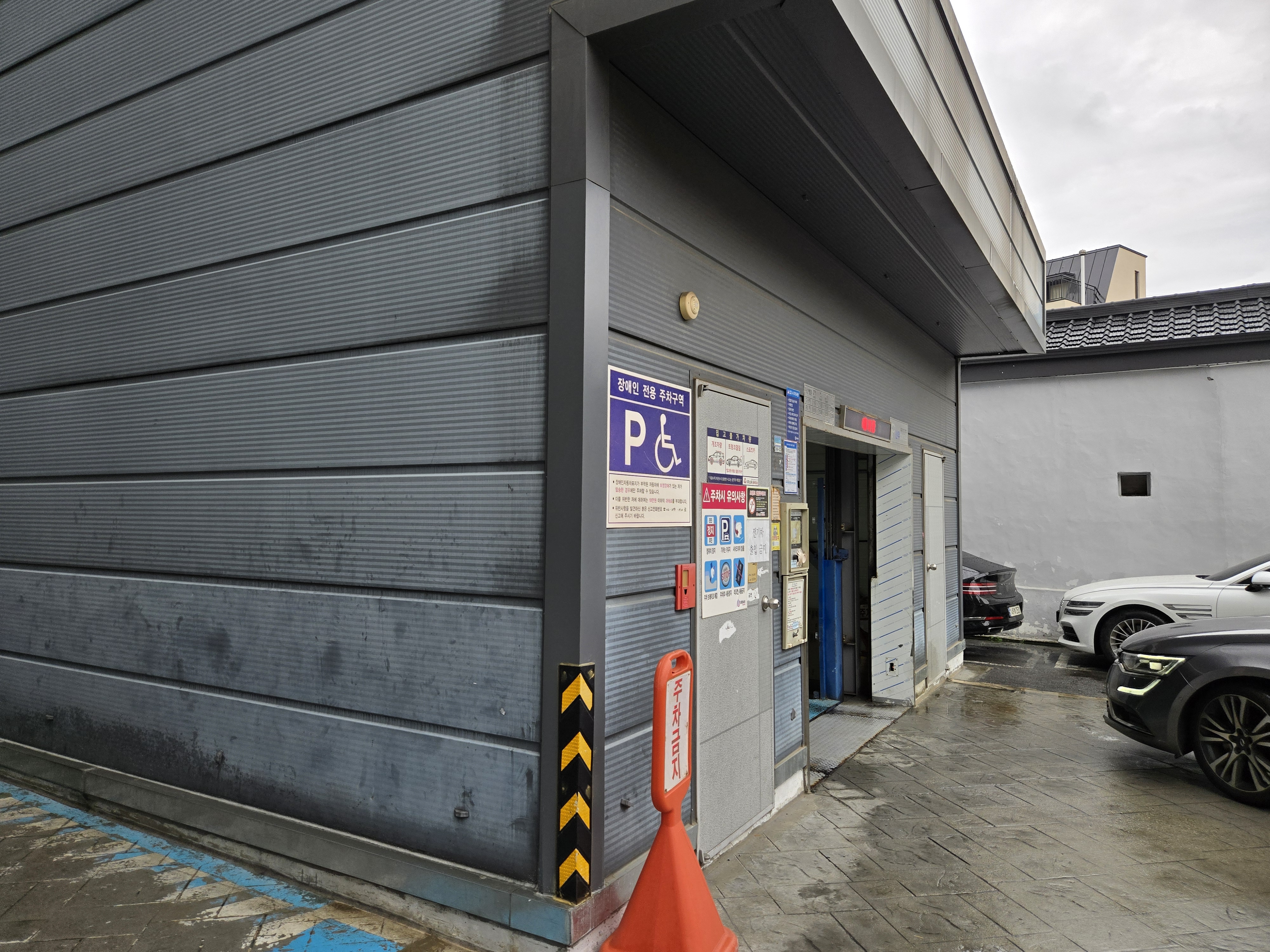 대형차나 SUV는 기계식 주차장에 들어가기 힘들기 때문에 건물 옆에 주차를 하였습니다.
