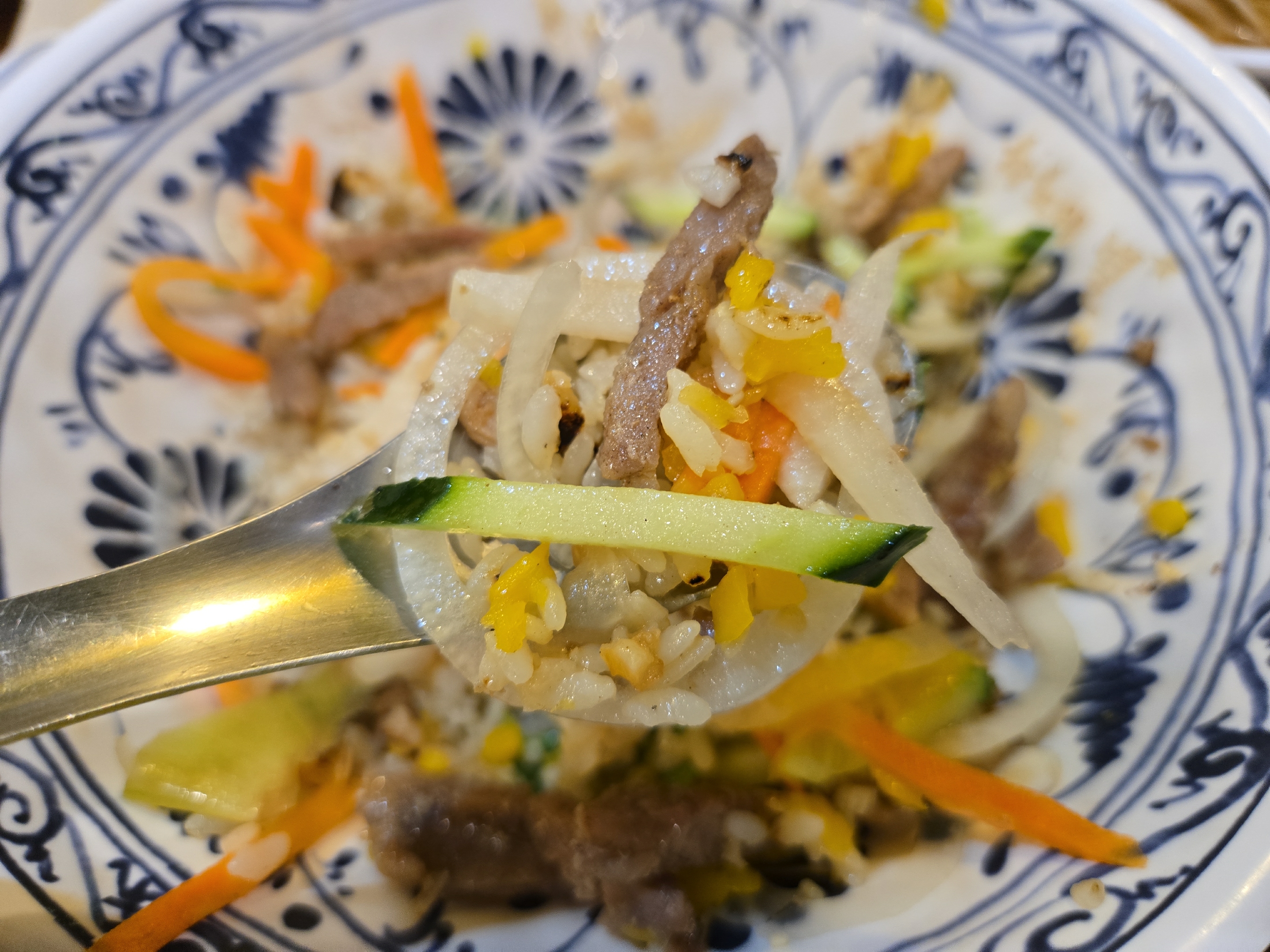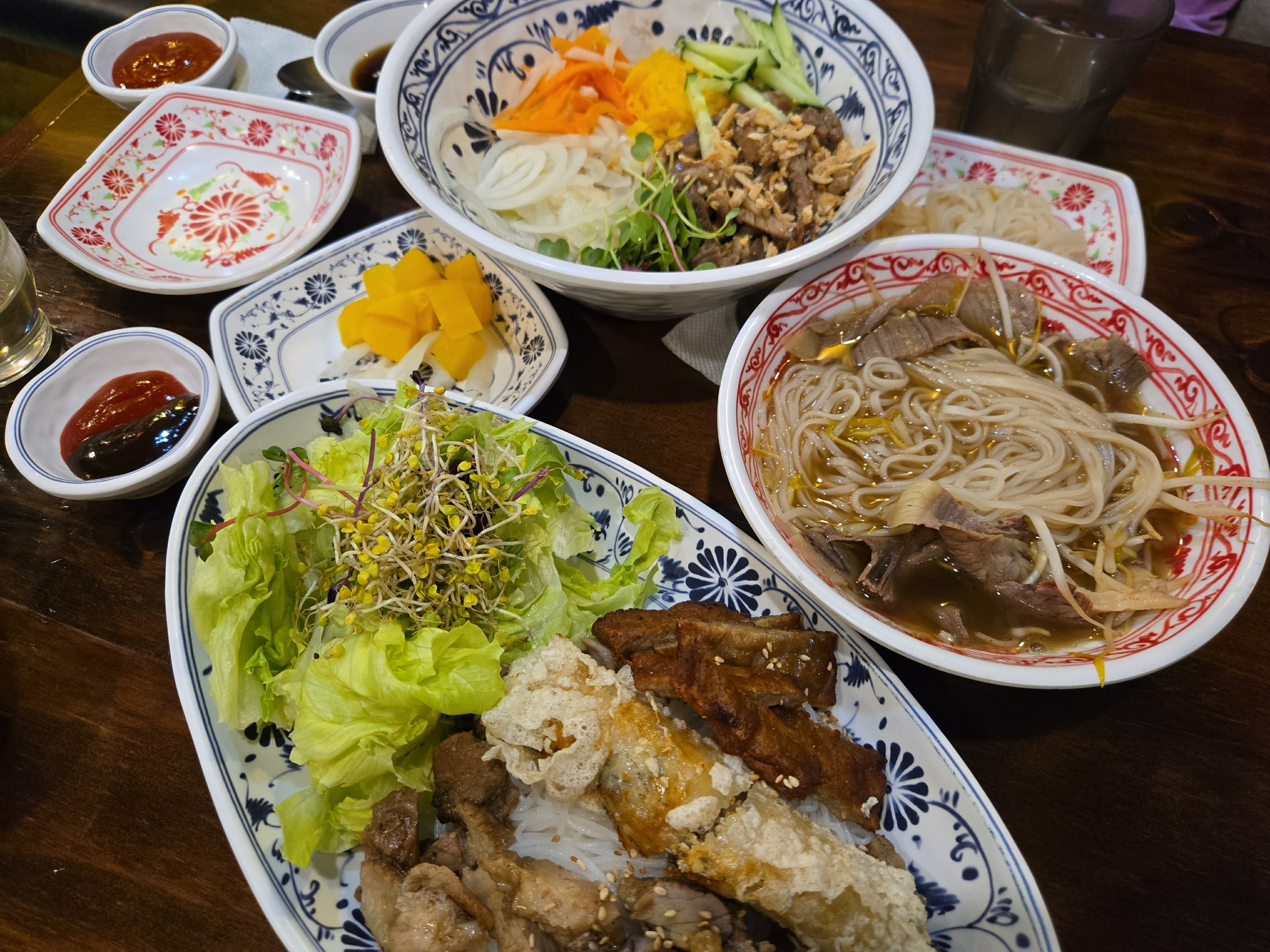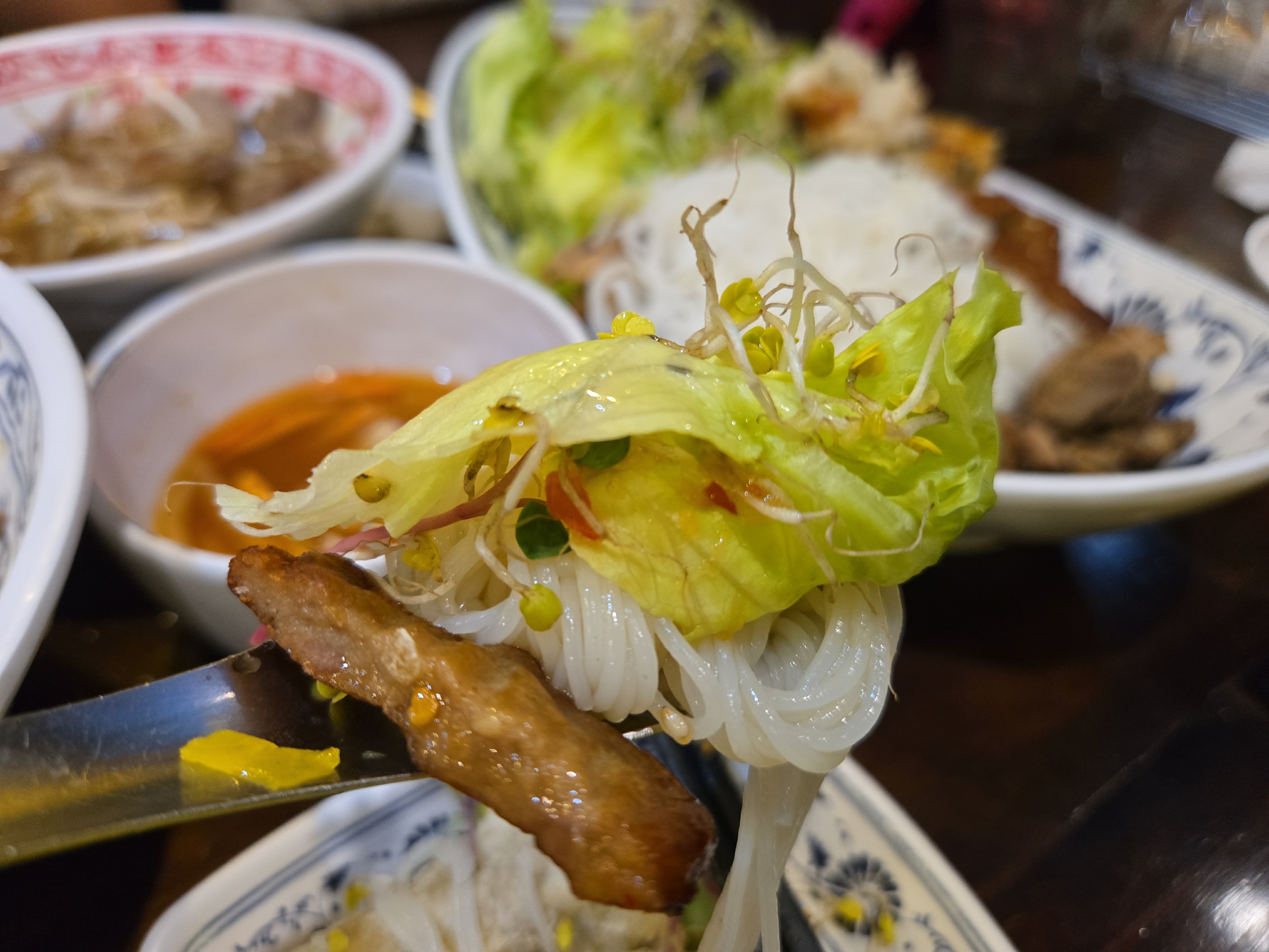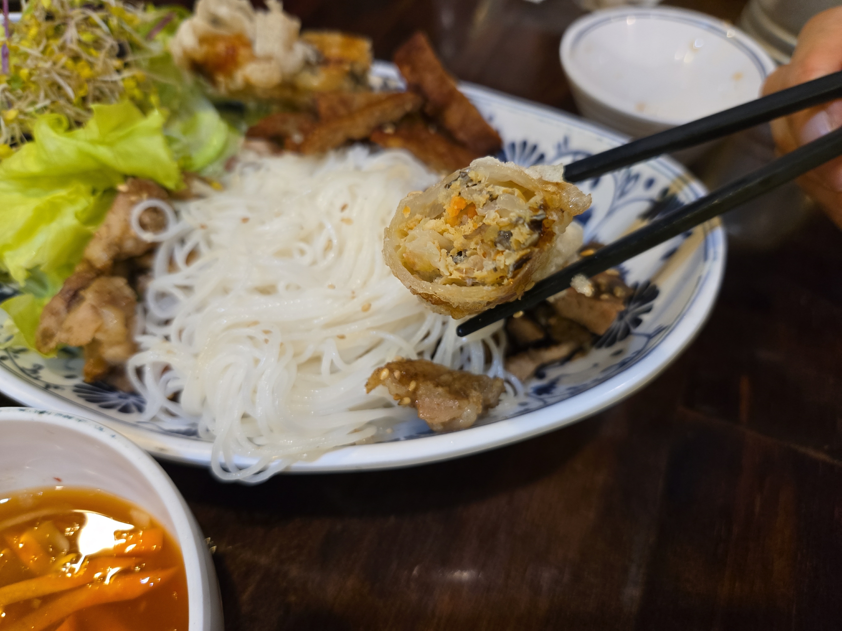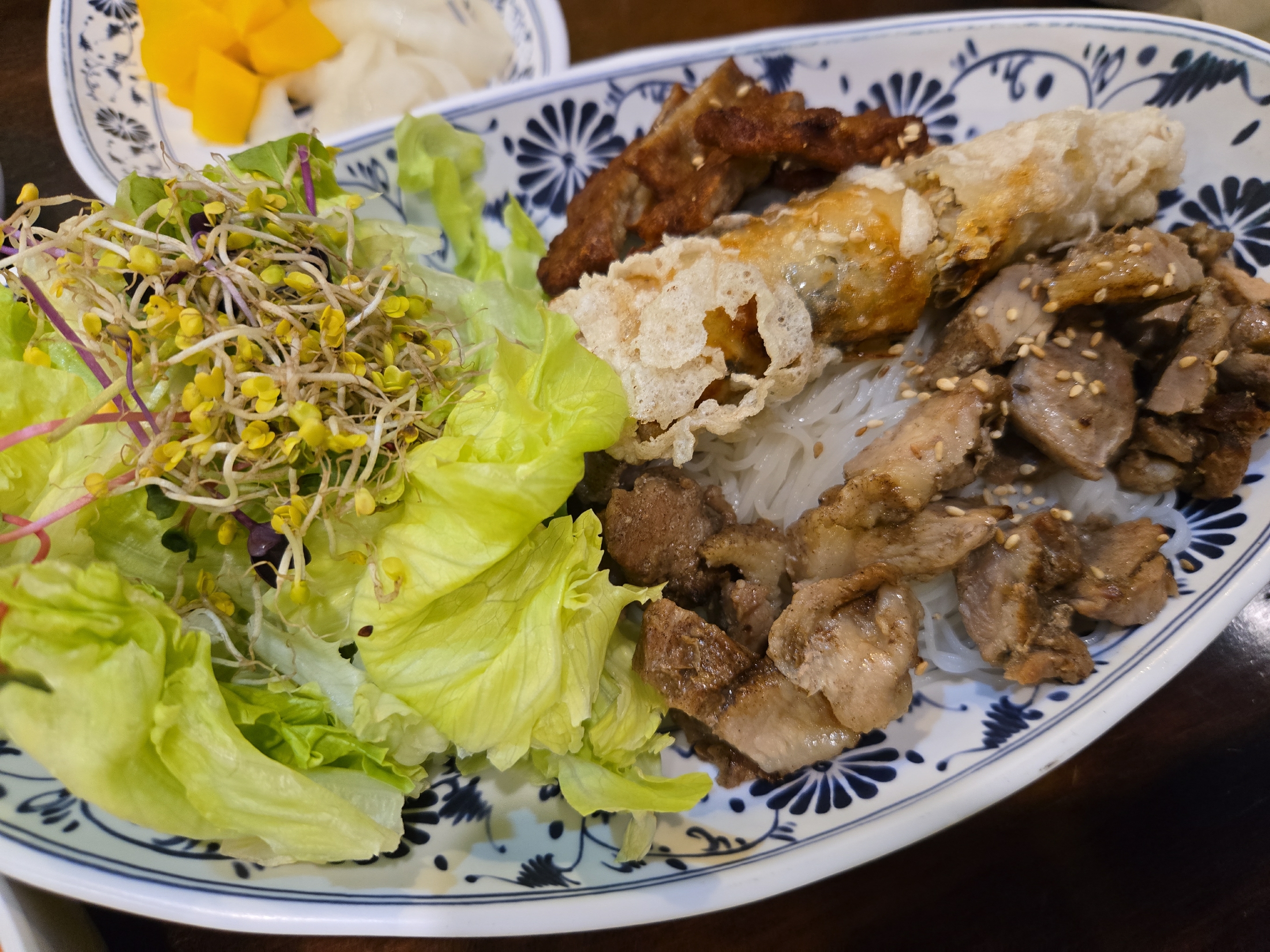 신선한 야채도 듬뿍 나오고 고기와 짜조가 가득 올라가 있습니다.