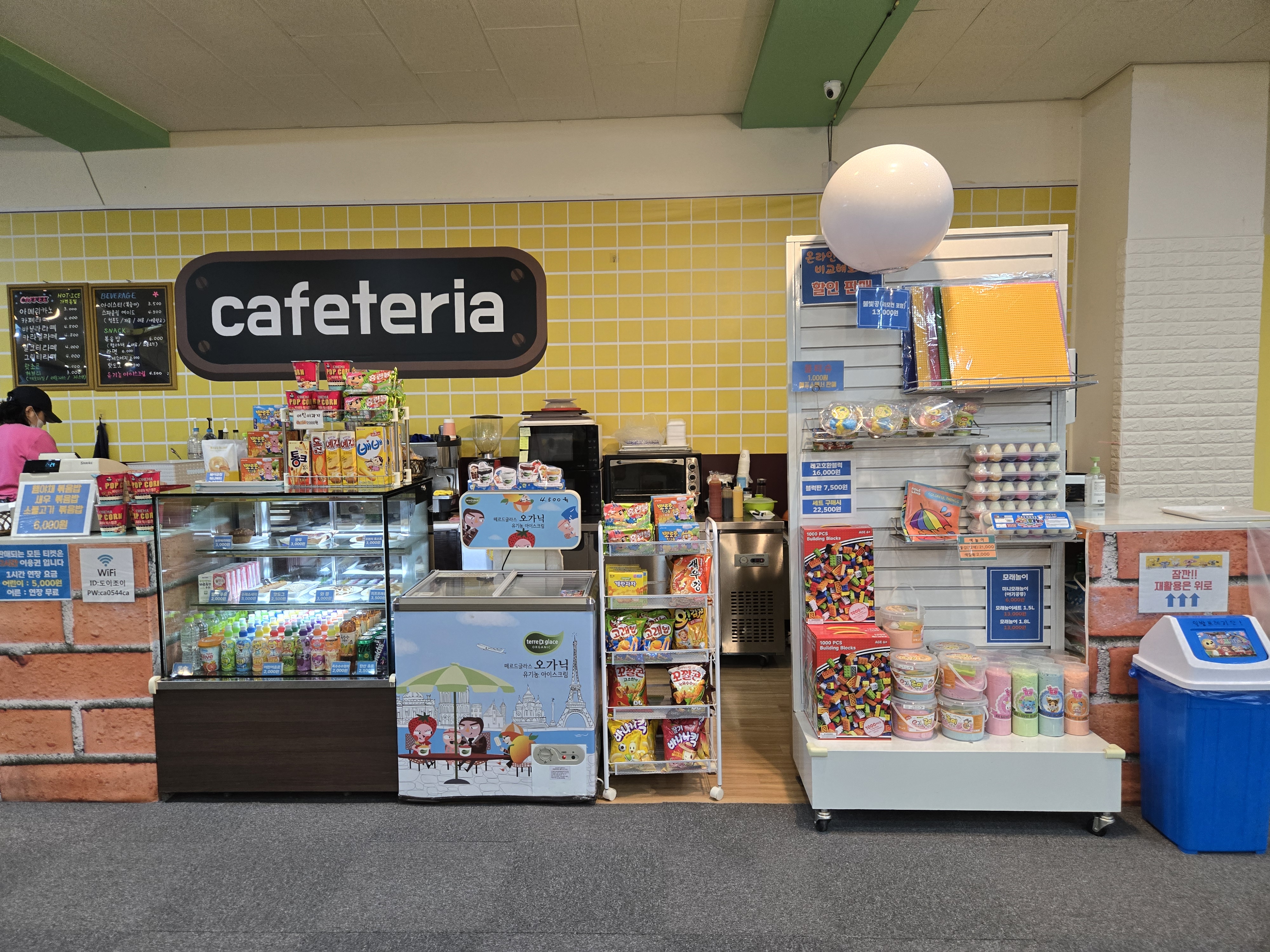 카페테리아에서는 간단한 식사류도 판매중이고 과자와 음료수도 다양하게 판매중이었습니다.