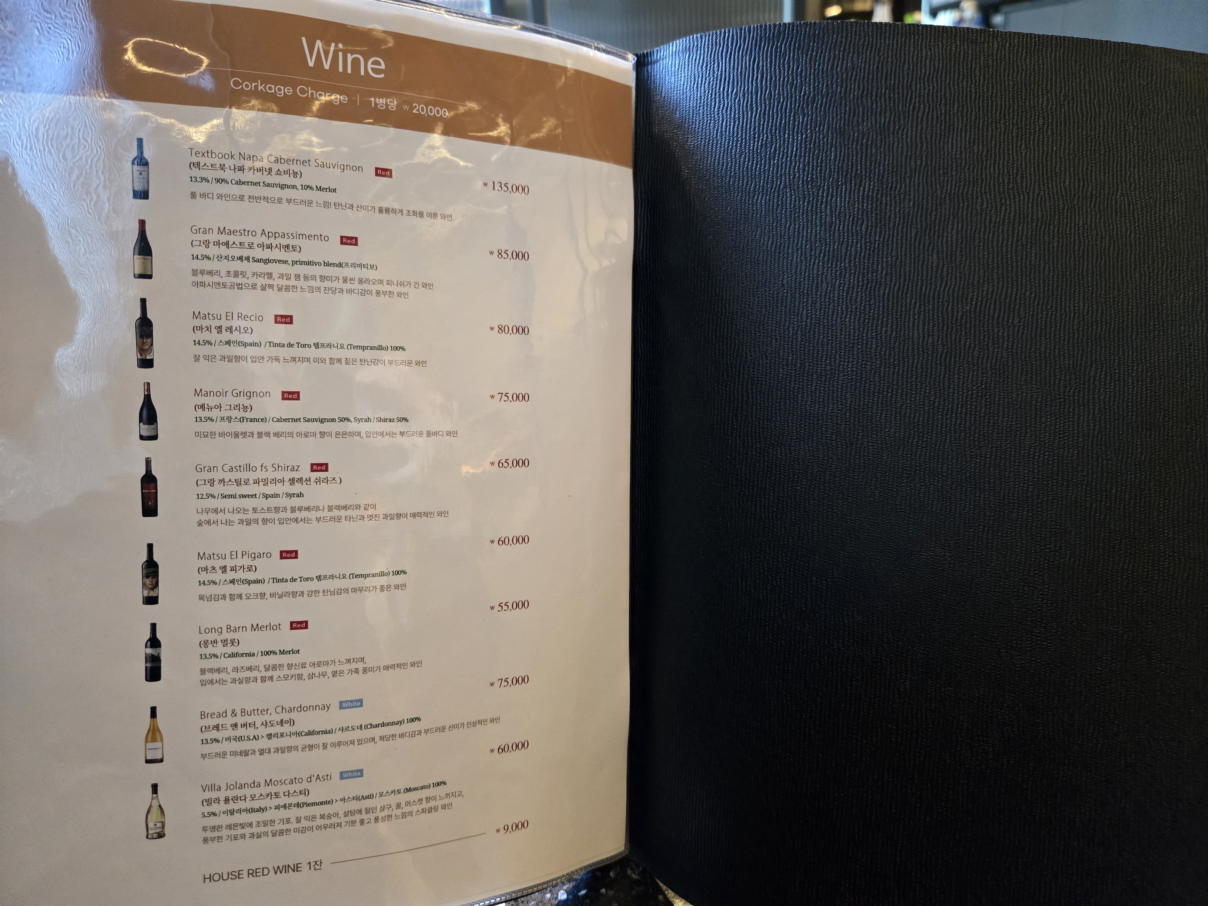 메뉴판에는 후식메뉴와 음주류, 와인메뉴도 있었습니다.
