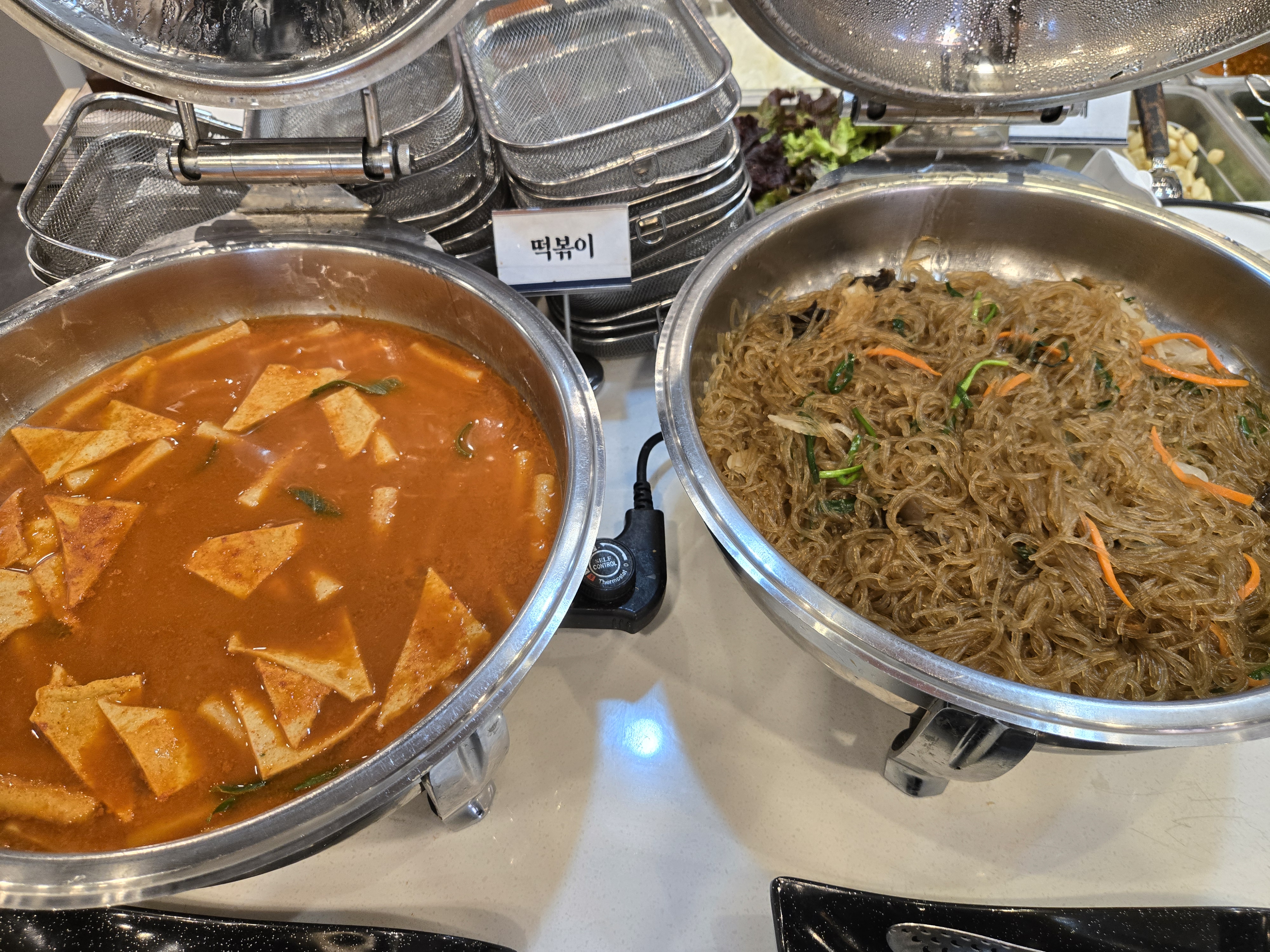 다양한 종류의 고기 외에도 무한리필 셀프바에는 떡볶이, 잡채, 청포묵무침, 비빔 천사채 샐러드, 고구마 샐러드,