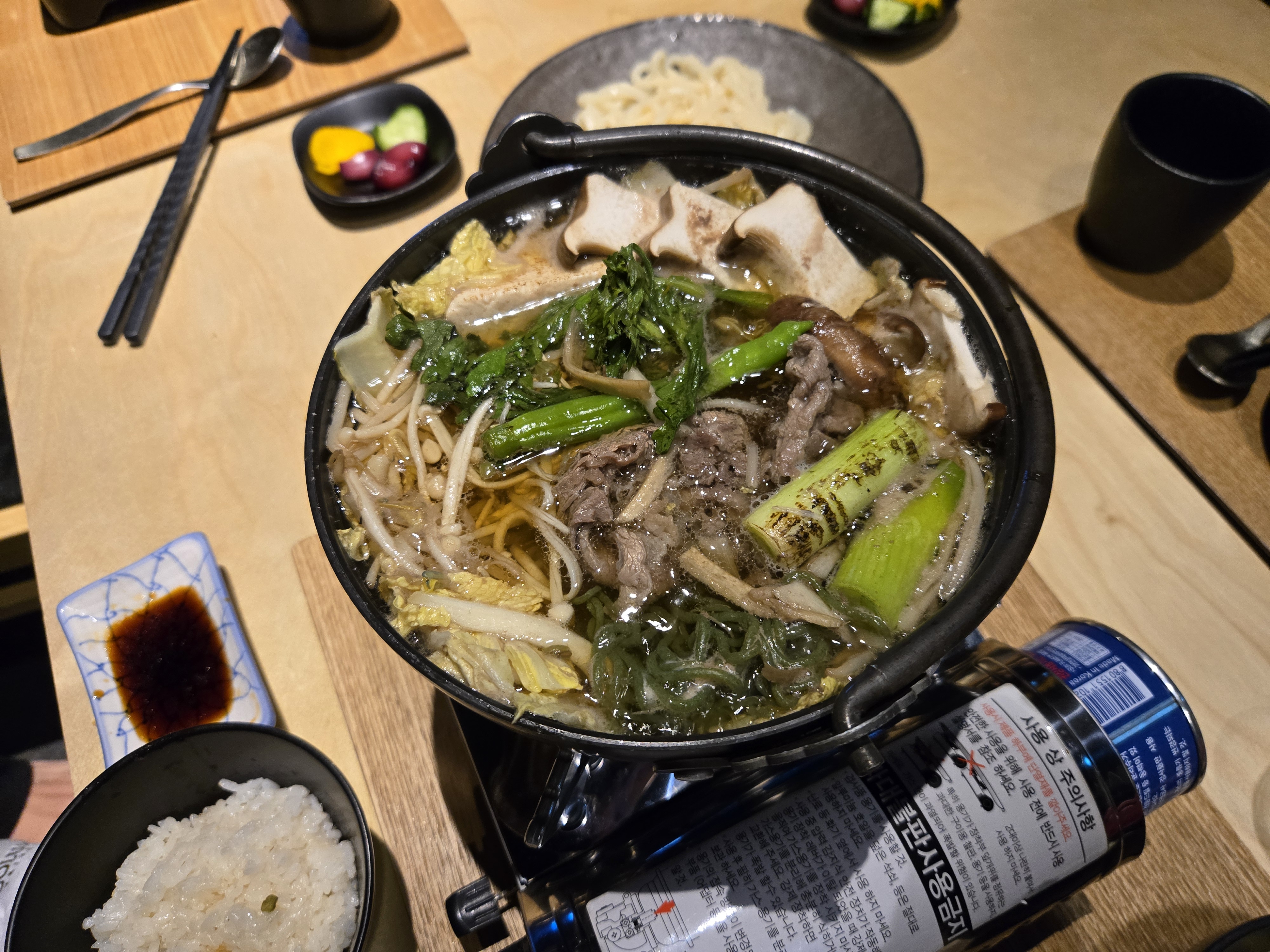 미니가스레인지가 함께 나와서 끓이면서 뜨끈하게 먹을 수 있어서 만족도 높은 메뉴였습니다.