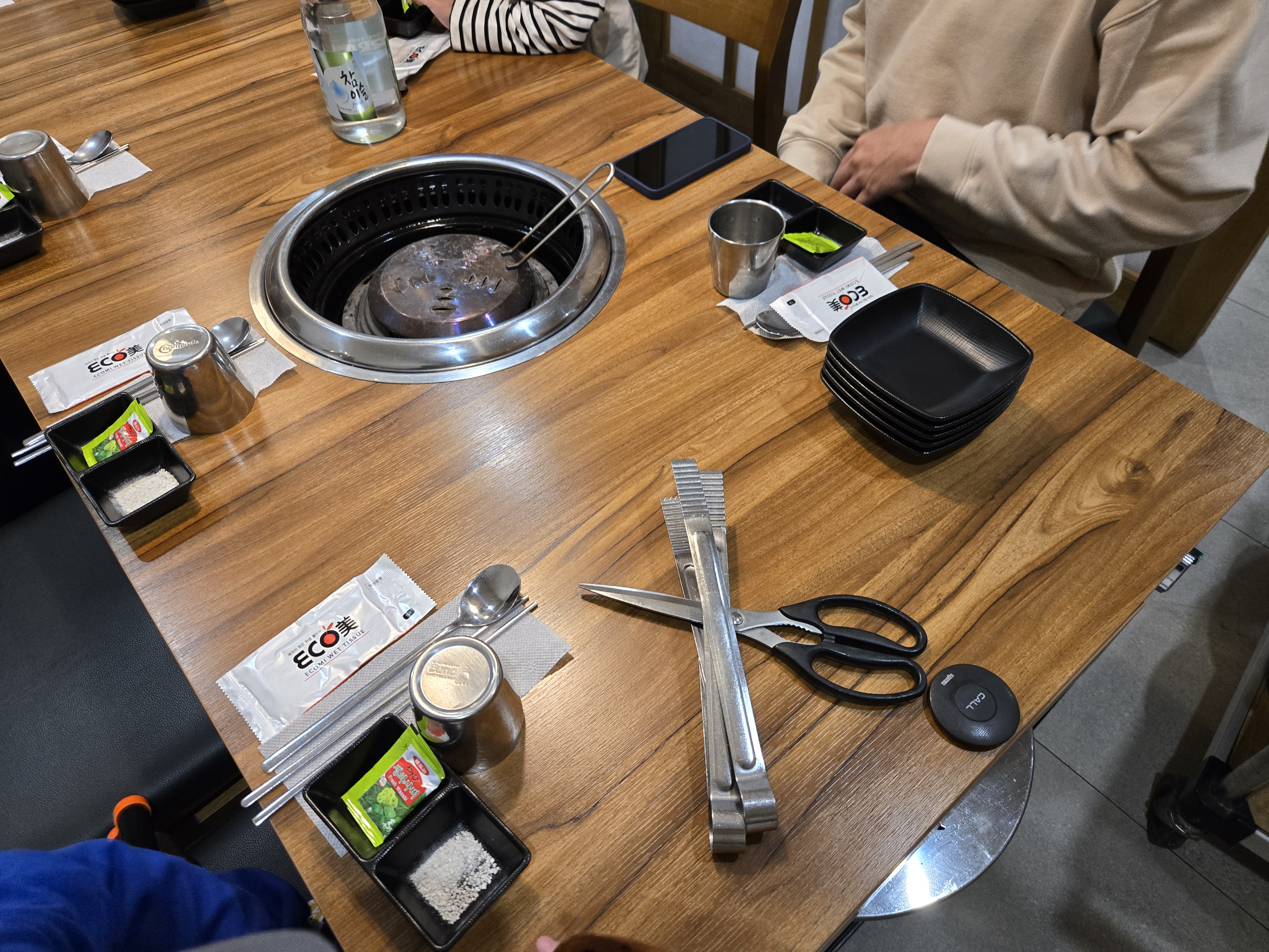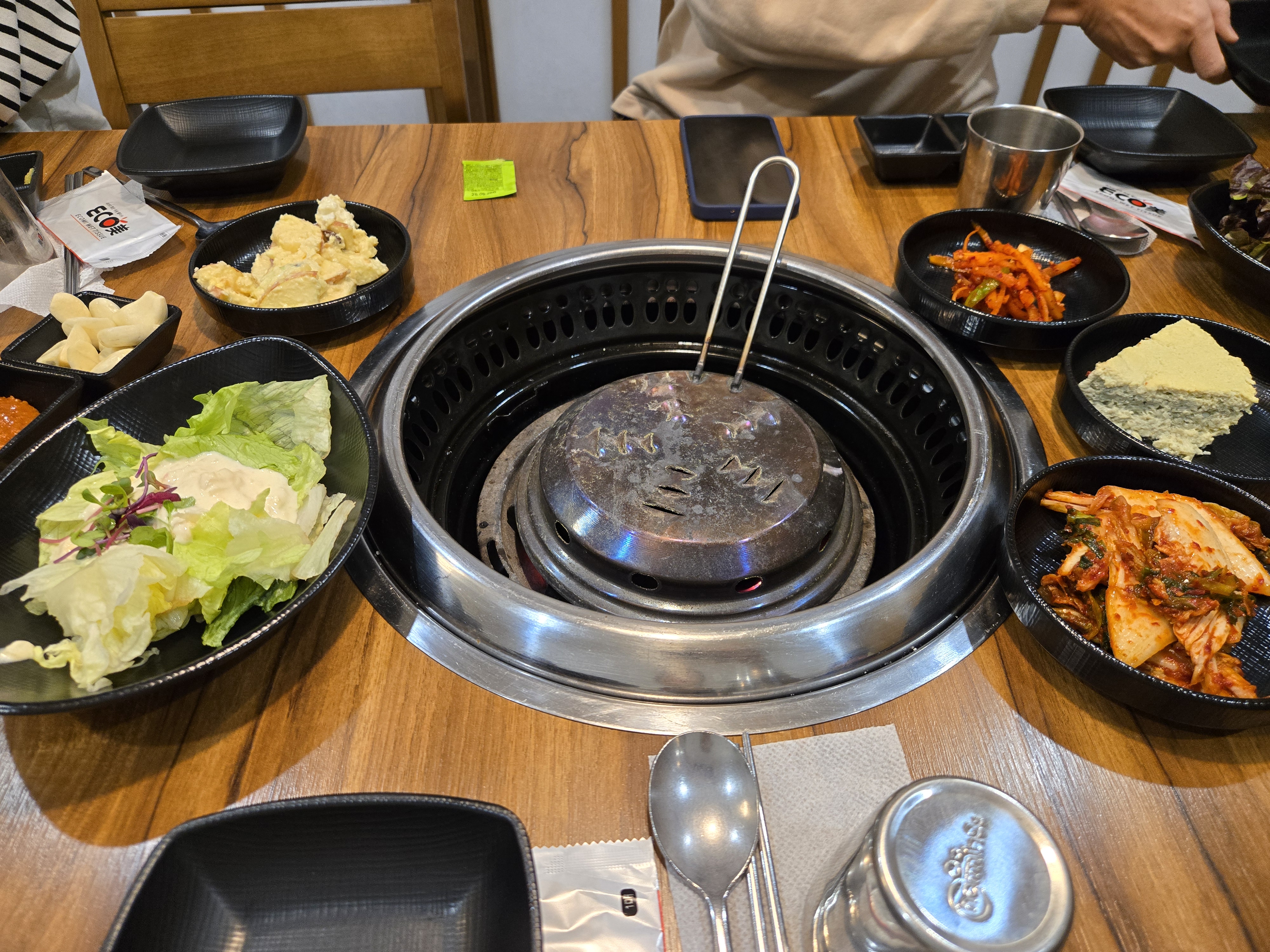 주문을 하자 직원분께서 반찬을 셋팅해주시고 불도 셋팅해주셨습니다.