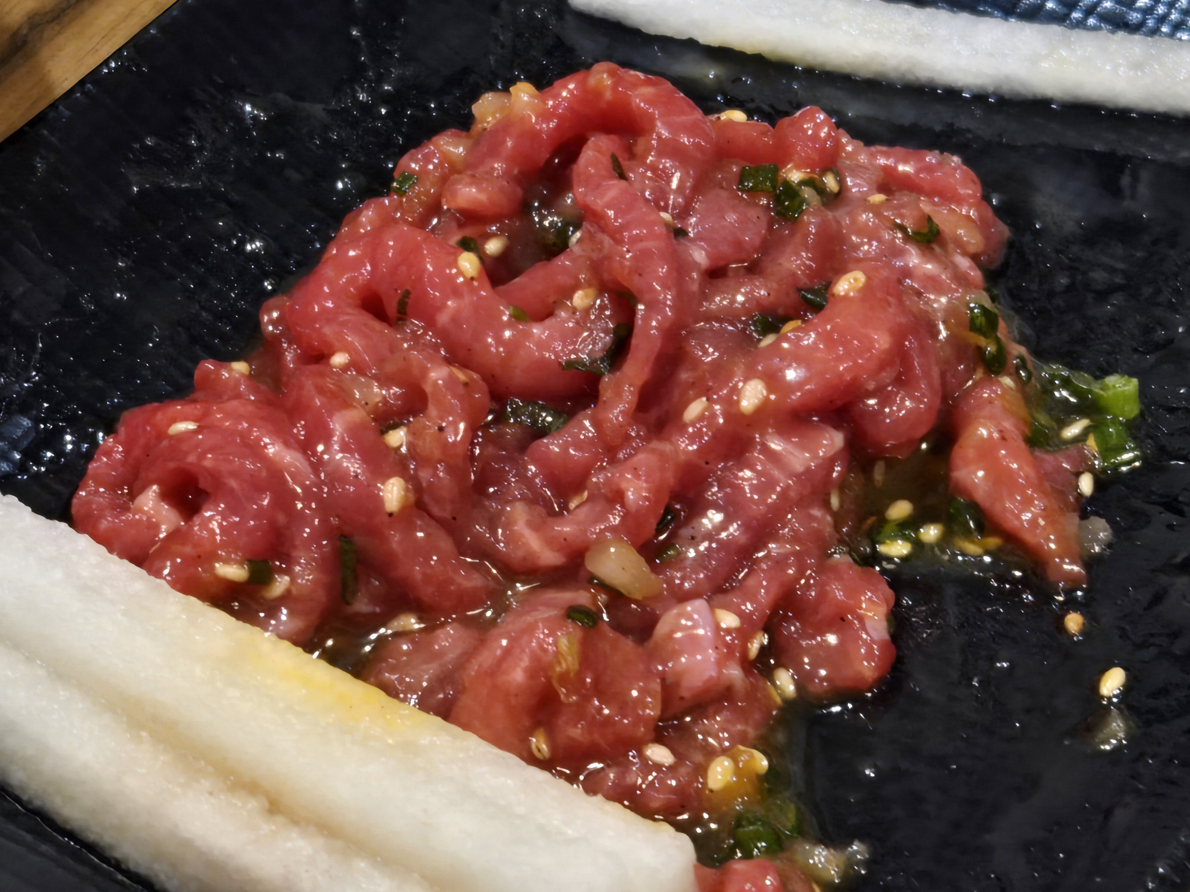 다음으로는 한우육회가 나왔습니다.