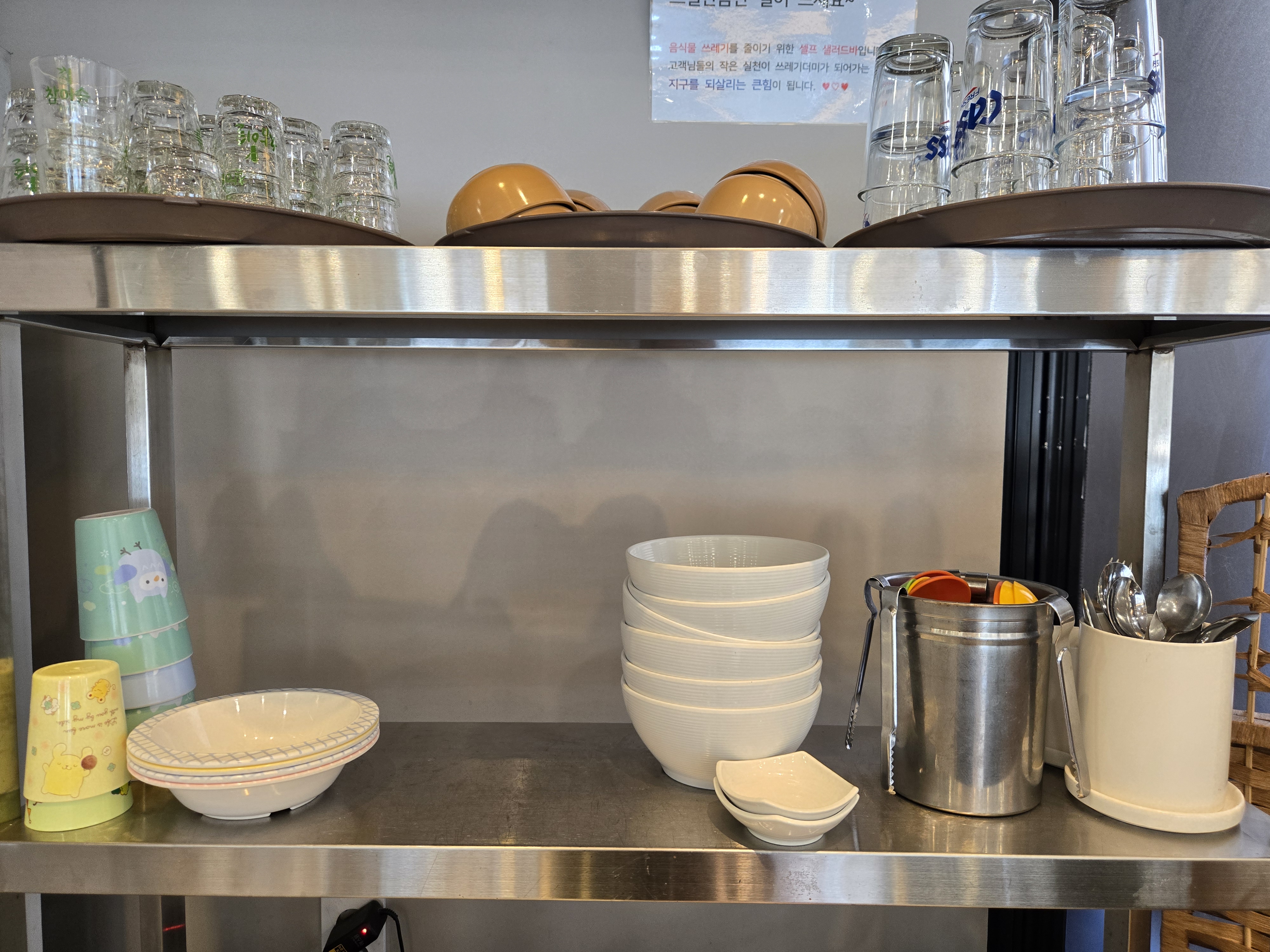 앞접시나 아이용 물컵과 접시, 식기는 셀프바에서 가져오면 되구요,