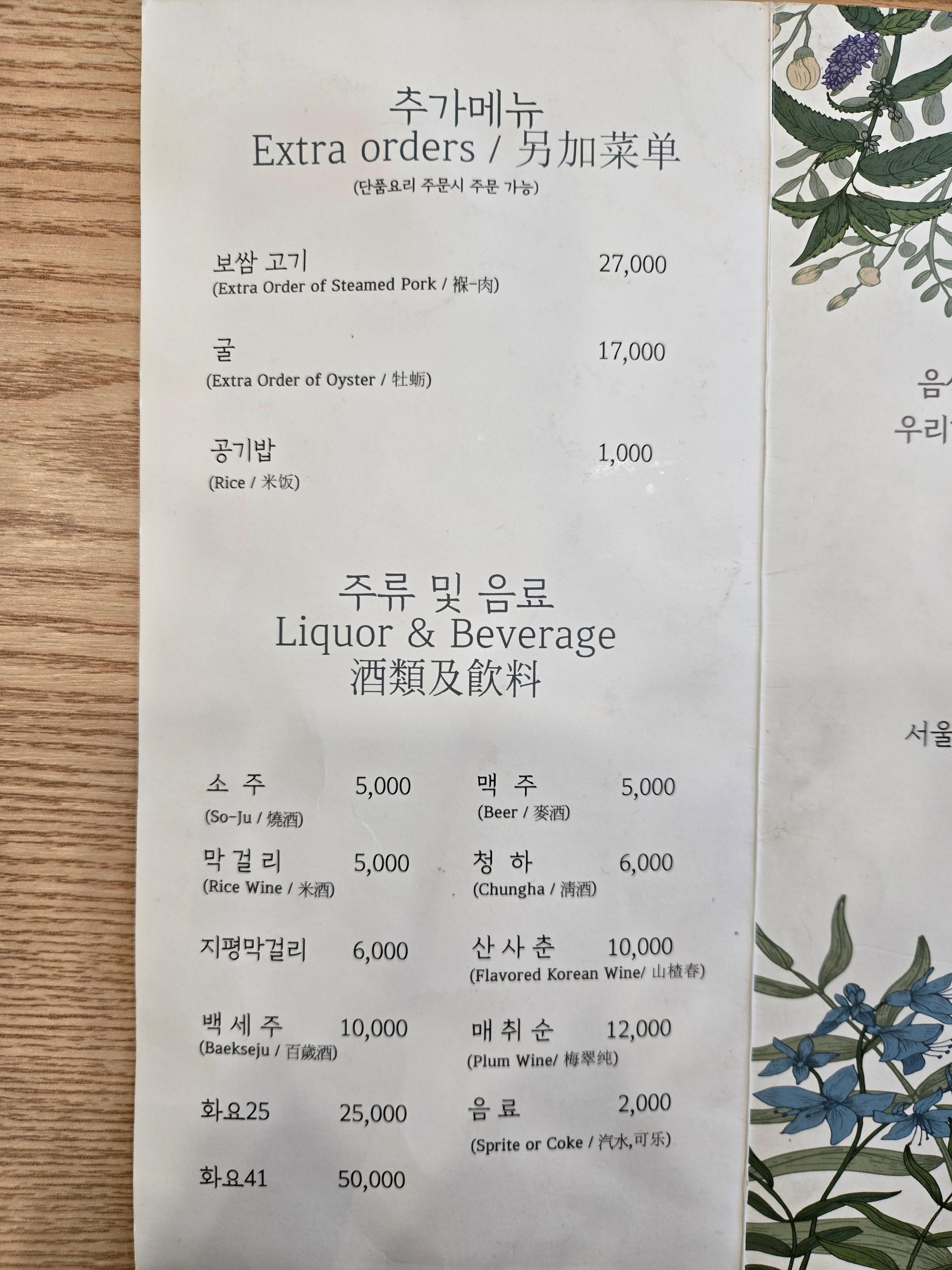 •메뉴: 아래 사진참고