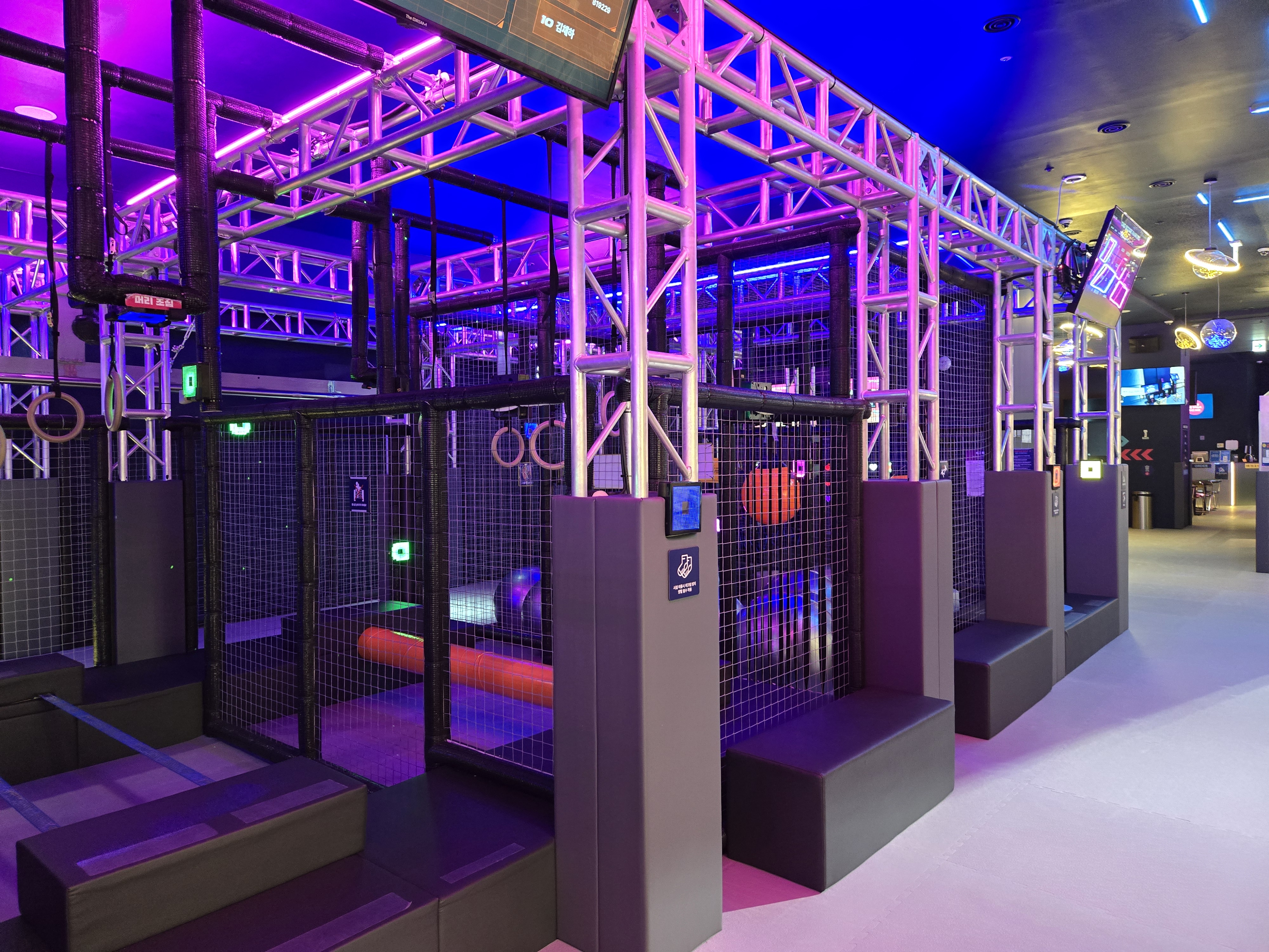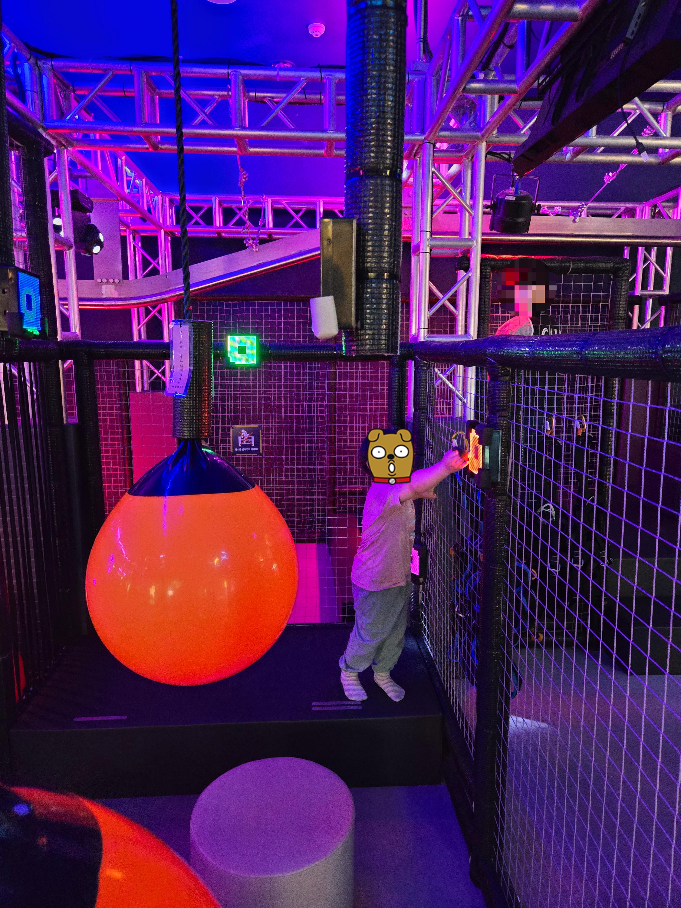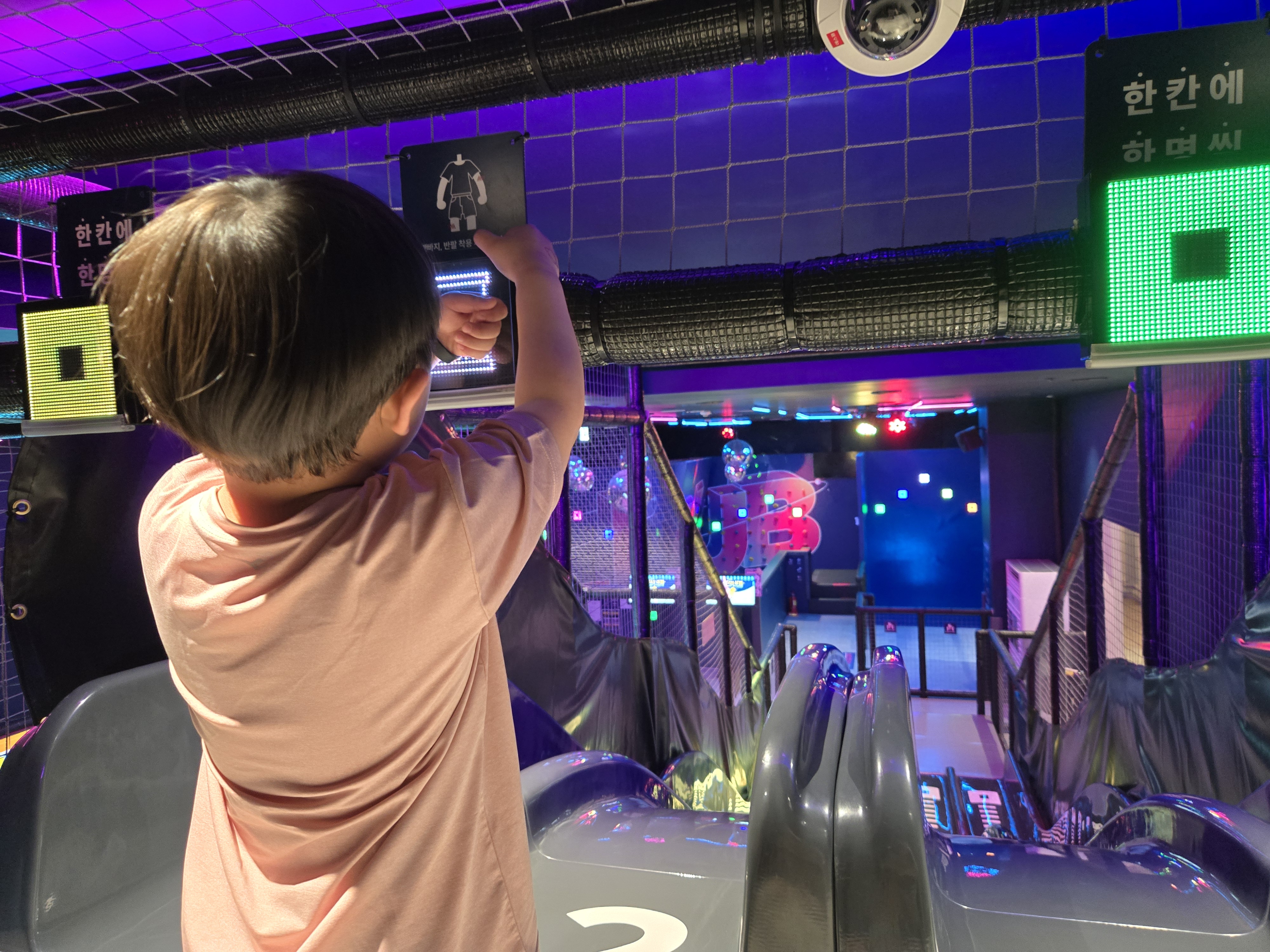 벽 꼭대기에 태그를 할 수 있는 활동도 있어서 아이들이 쉴 틈 없이 움직이게 만드는 키즈카페였네요 ^^