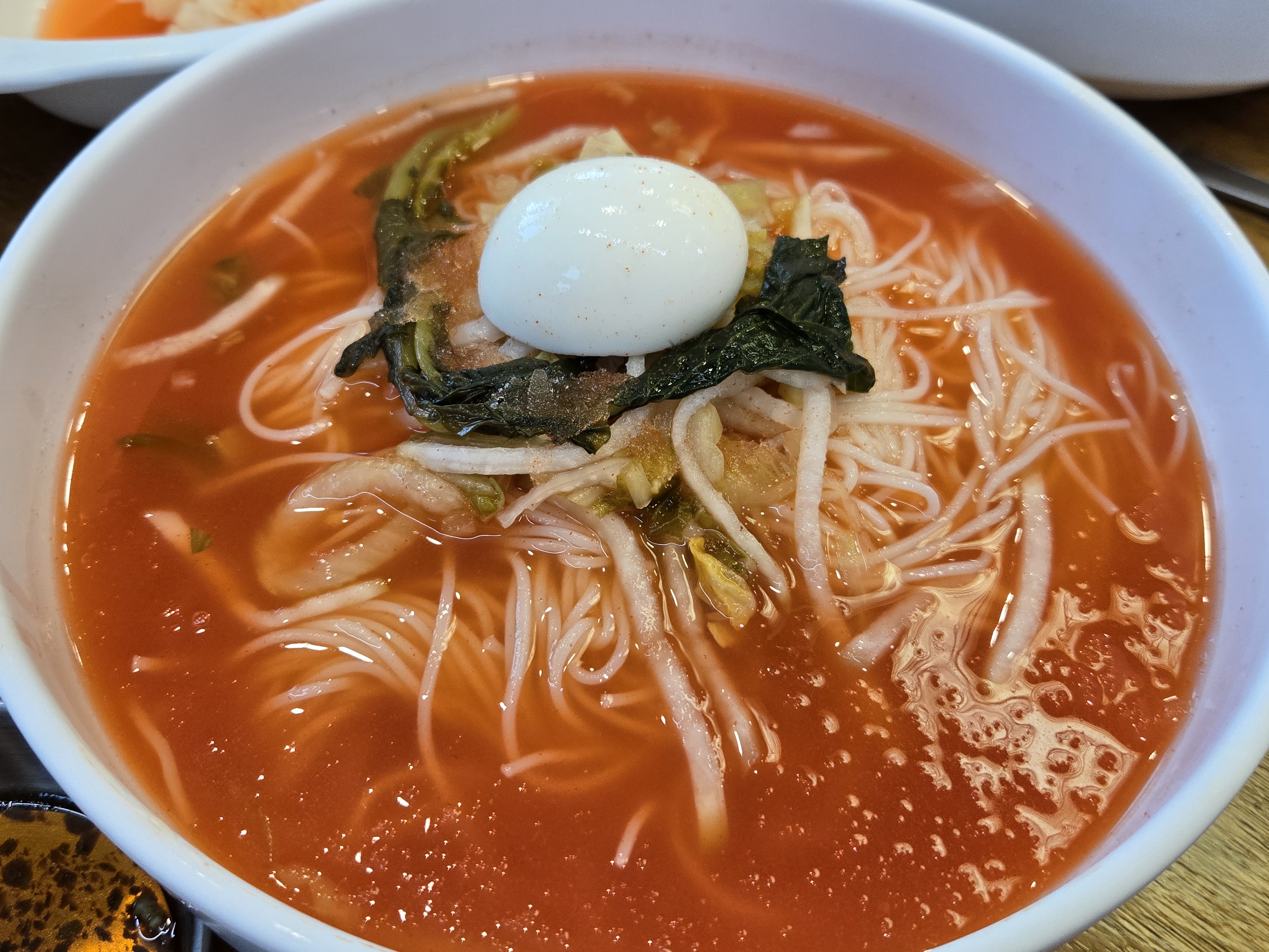 제 입맛에는 살짝 싱거워서 함께 제공되는 이북식김치도 곁들여 먹고 고추도 넣어서 먹었습니다.