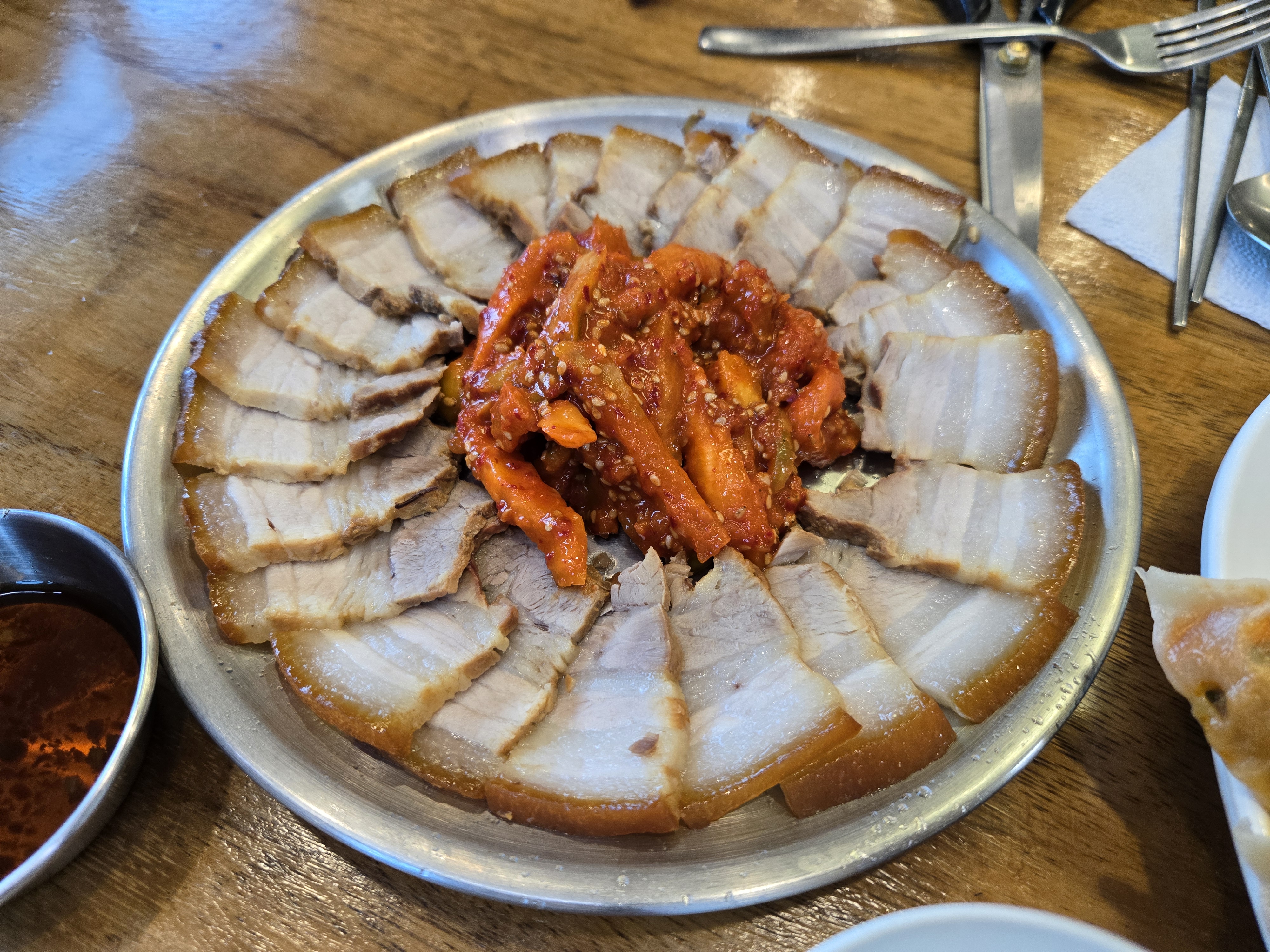 오겹살수육은 껍질이 쫀득하게 잘 삶아져서 맛이 좋았습니다.