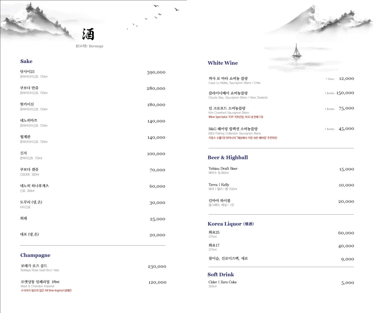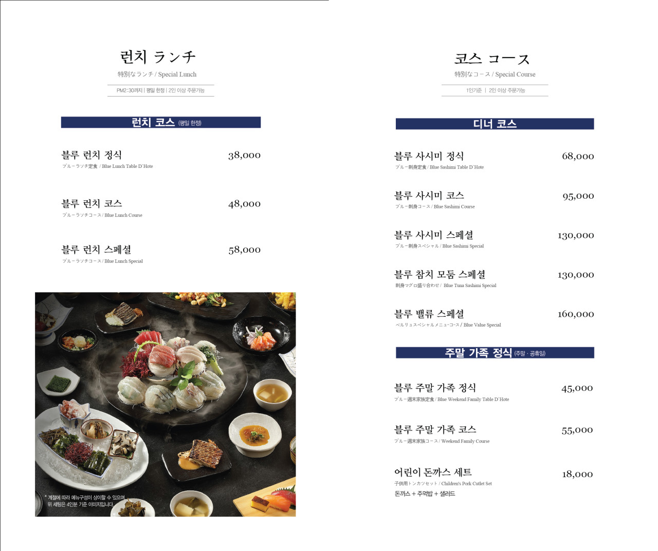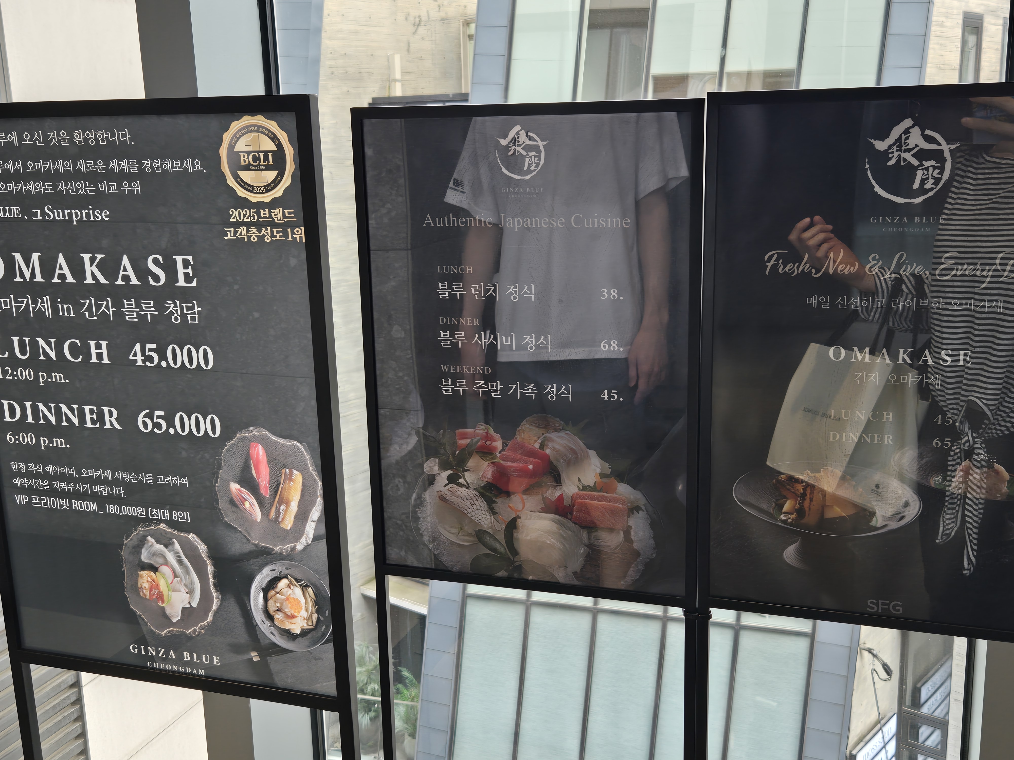 입구에는 긴자블루의 메뉴가 적혀있습니다.