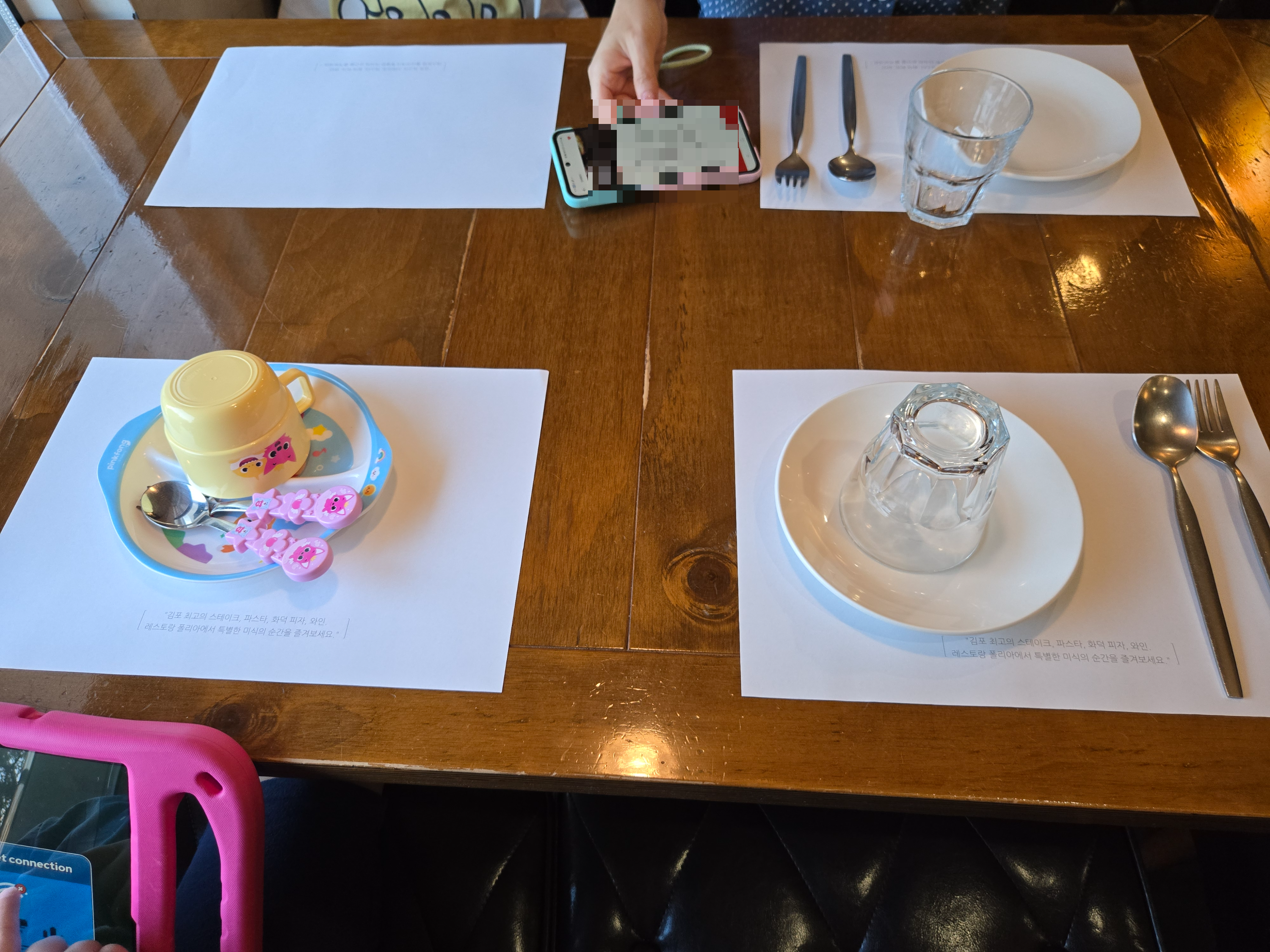 아이용 접시와 물컵, 수저도 센스있게 셋팅해주십니다.