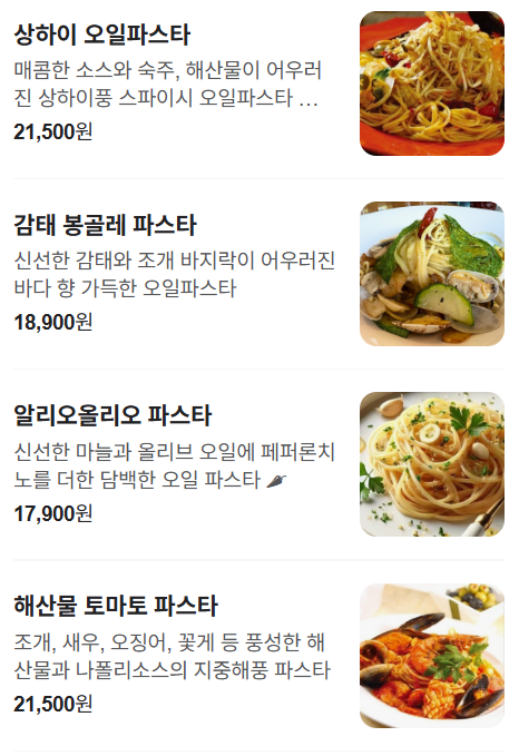 크림이 진하고 깊은맛이 있어서 맛이 좋았습니다. 소스가 살짝 꾸덕(?)한 느낌이라 좋았습니다.