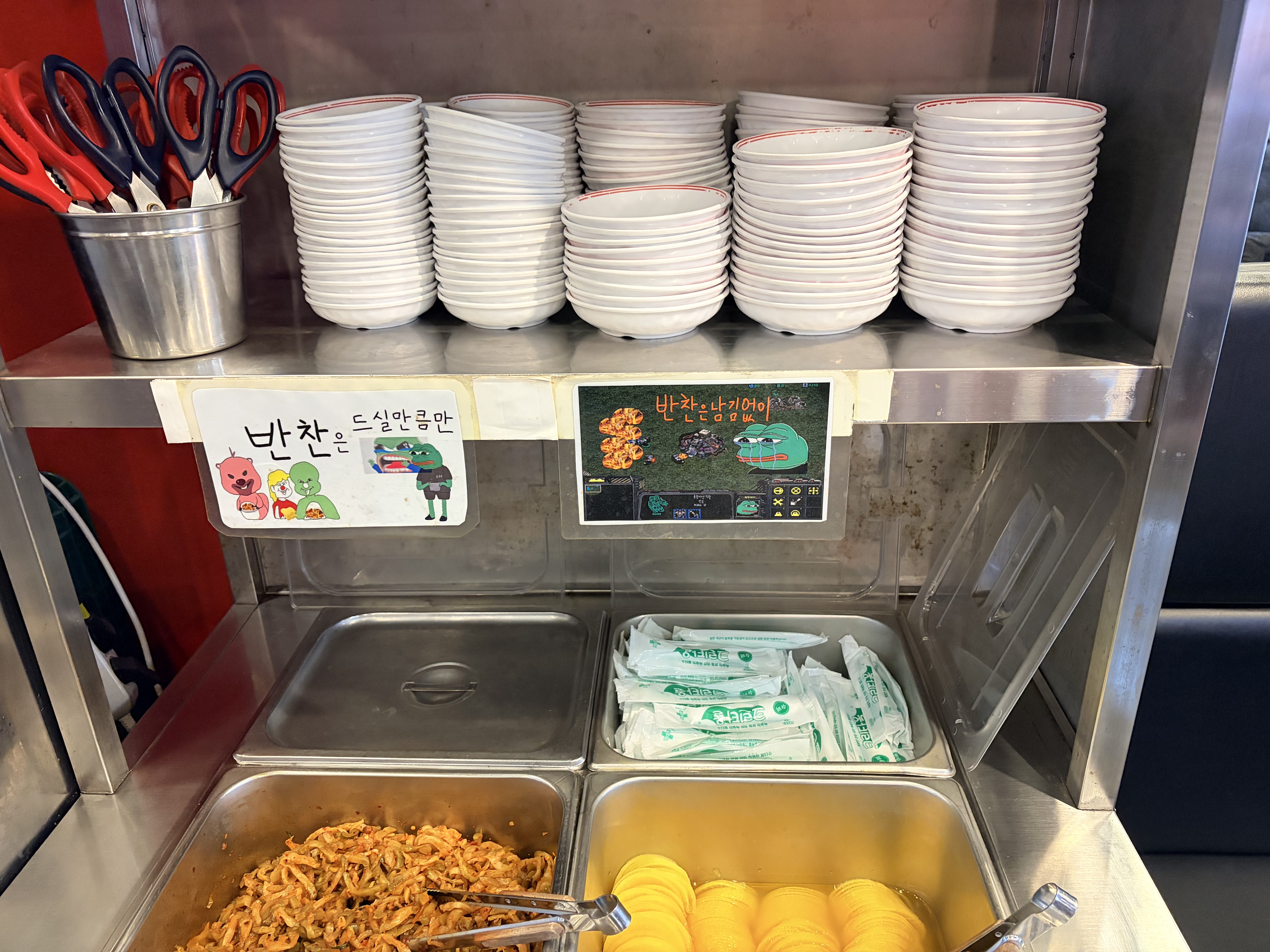 반찬은 짜사이와 단무지가 있고 셀프바에서 원하는 만큼 가져와서 먹으면 됩니다.