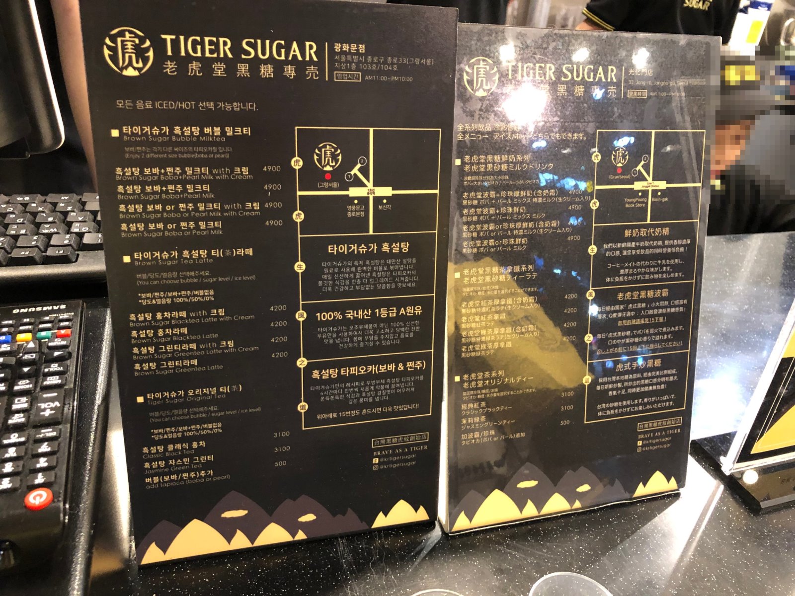 길을 가다보면 브라운슈가 혹은 흑설탕밀크티, 버블티라고 불리는 음료를 많이 판매하고 있는데요, 이런 음료의 원조격이라고 하는(?) 타이거슈가 브랜드의 광화문점을 우연히 방문해보았습니다.