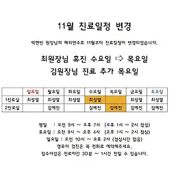 동대문 답십리 연세키즈 소아청소년과 5월 스케쥴 안내 2016년 5월 답십리 연세키즈 소아청소년과 진료시간표입니다. 5월부터 박현빈 원장님께서 진료를 다시 시작하셨습니다. 최성열 원장님: 월, 화, 목, 금, 토, 일 김예진 원장님: 월, 수, 목, 토 박현빈 원장님: 화(2진료실), 수(1진료실), 금(2진료실) 수요일 1진료실은 박현빈 원장님께서 진료하십니다. 5월 5일과 14일은 공휴일진료입니다. 영유아 검진 예약은 전화(02-2216-7575)나 접수대에서 하셔야합니다. 에버메디로 영유아 건진 예약은 받지 않습니다.
